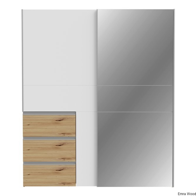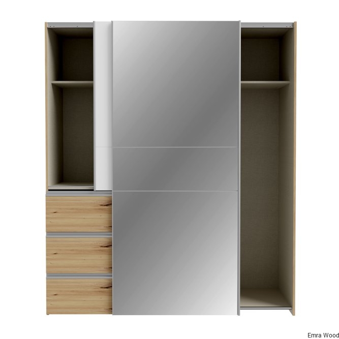 Szafa przesuwna z lustrem 170 cm z kolekcji WINN 2 będzie świetnie wyglądać zwłaszcza w sypialni lub przedpokoju urządzonym w stylu skandynawskim. Mebel jest niezwykle pojemny i wygodny w użytkowaniu za sprawą połaczenia różnych opcji organizacji ubrań: drążków, półek oraz szuflad. Lustro na froncie szafy optycznie powiększy pomieszczenie, a także idealnie sprawdzi się podczas doboru codziennej stylizacji.
