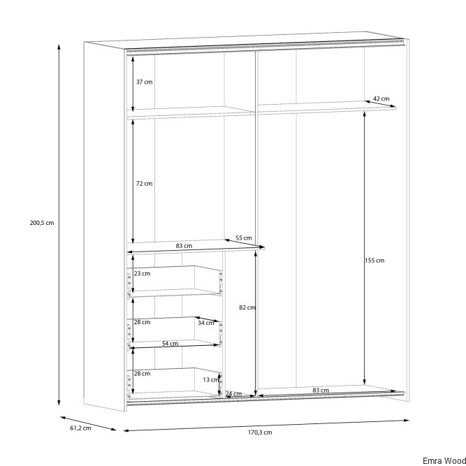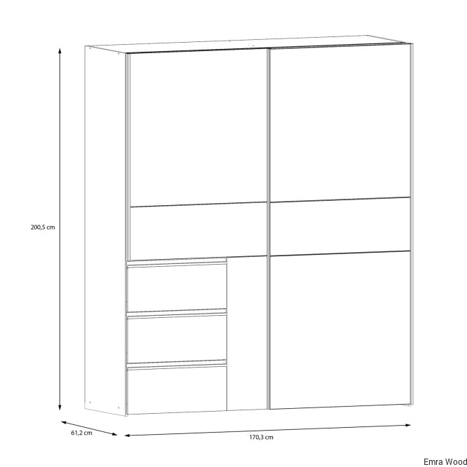 Wymiary: szerokość: 170,3 cm x wysokość: 200,5 cm x głębokość: 61,2 cm