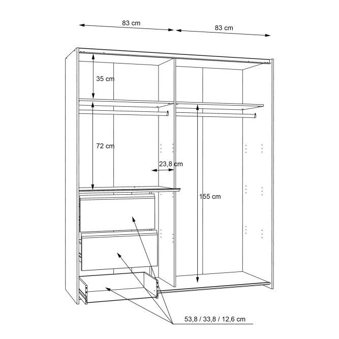 Doskonała szafa, która zapewni wygodne codzienne użytkowanie. Szafa jest przestronna, dzięki czemu znajdzie się w niej wystarczająco miejsce na ubrania. Mebel doskonale sprawdzi się w sypialni, a dzięki uniwersalnemu dekorowi, wkomponuje się z resztą mebli