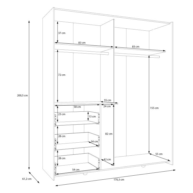 Wymiary: 170.3 x 200.5 x 61.2 cm