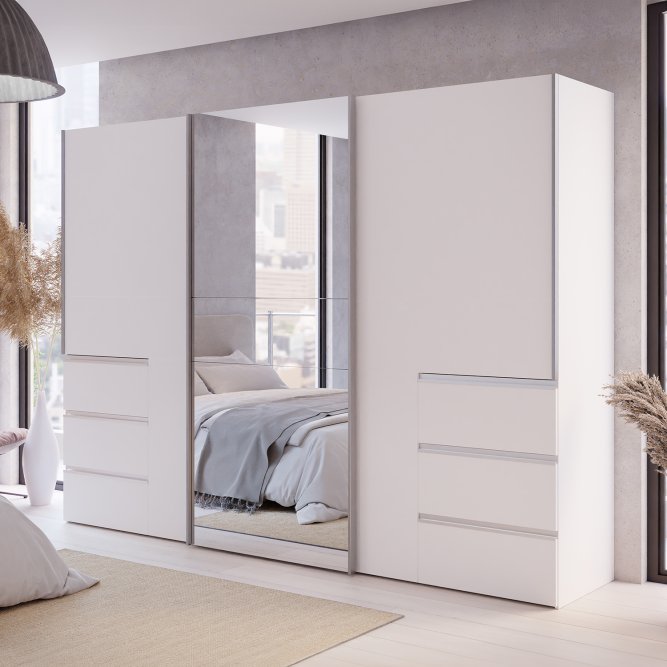 Ta 3-drzwiowa szafa z kolekcji WINN 2 sprawi, że sypialnia zyska wyróżniający element aranżacji i funkcjonalny mebel. Praktyczne wnętrze szafy zagwarantuje wygodę w przechowywaniu ubrań, pościeli i innych rzeczy osobistych.