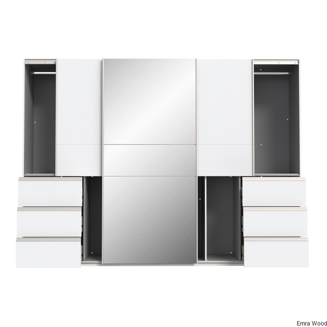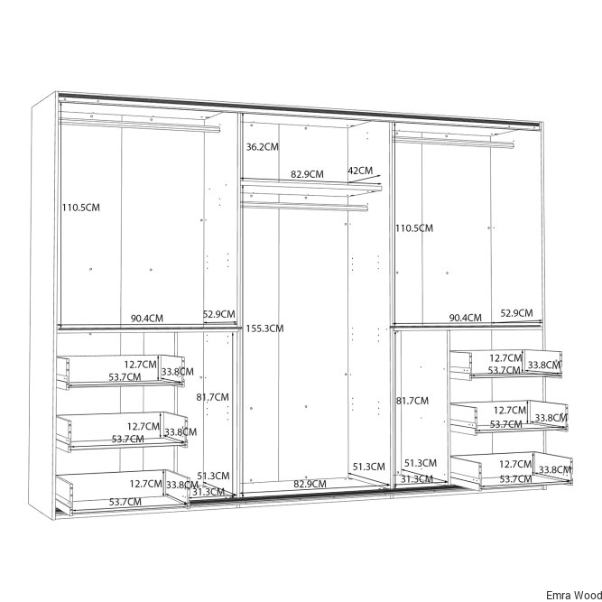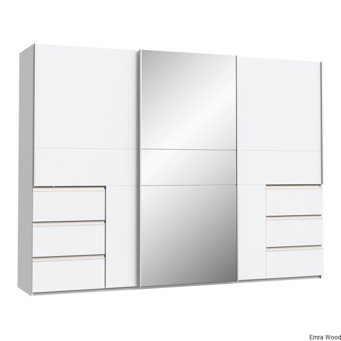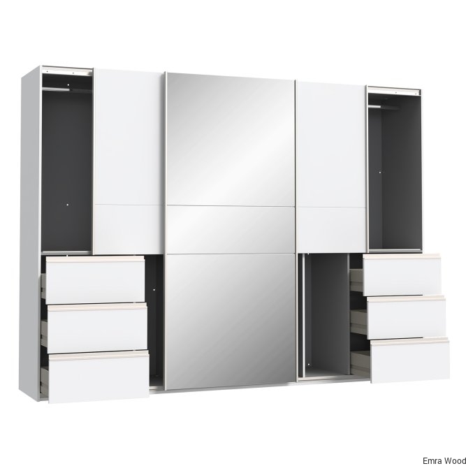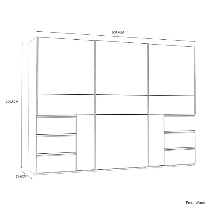 Przestronna szafa o wymiarach: szerokość 269,7 cm x wysokość 200,5 cm x głębokość 57,6 cm