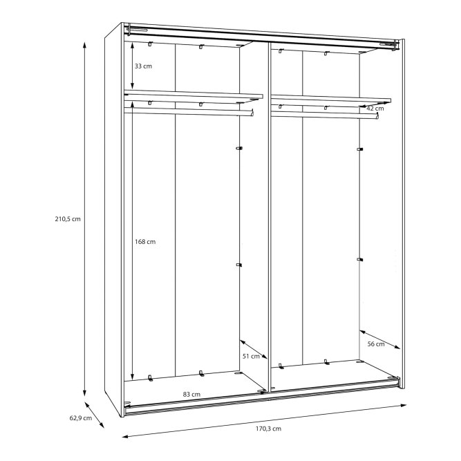 Wymiary: 170.3 x 210.5 x 62.9 cm