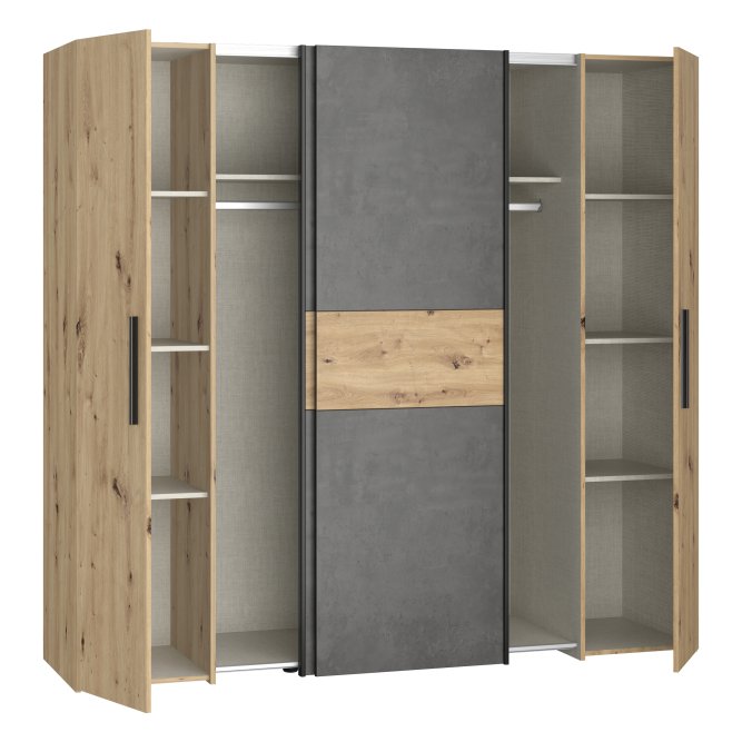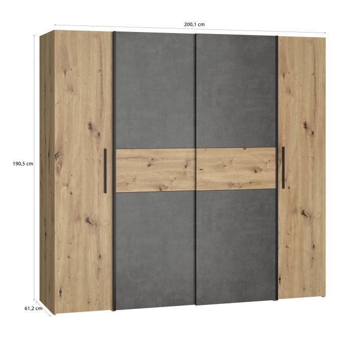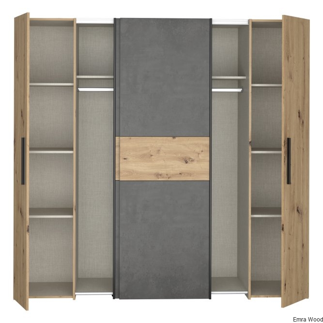 Szafa ubraniowa w stylu MODERN będzie pięknie prezentować się w takich pomieszczeniach jak Sypialnia. 4-drzwiowa Szafa ubraniowa zapewnia odpowiednio dużo miejsca do przechowywania.