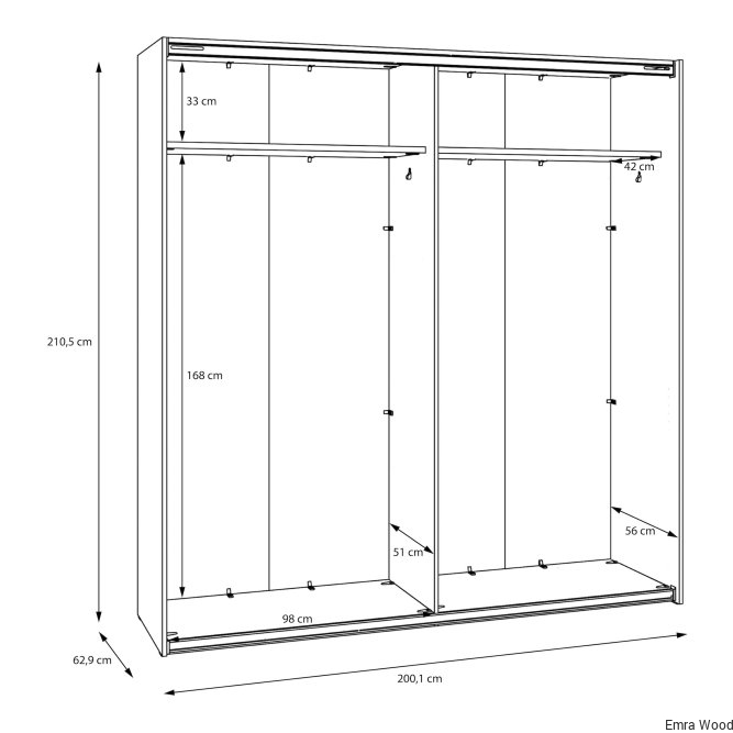 Wymiary: 200.1 x 210.5 x 62.9 cm