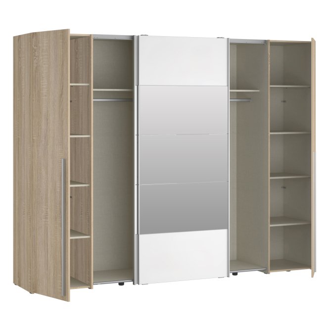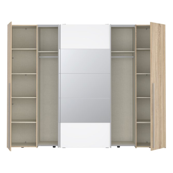 Szafa ubraniowa w stylu MODERN będzie pięknie prezentować się w takich pomieszczeniach jak Sypialnia. 4-drzwiowa Szafa ubraniowa zapewnia odpowiednio dużo miejsca do przechowywania.