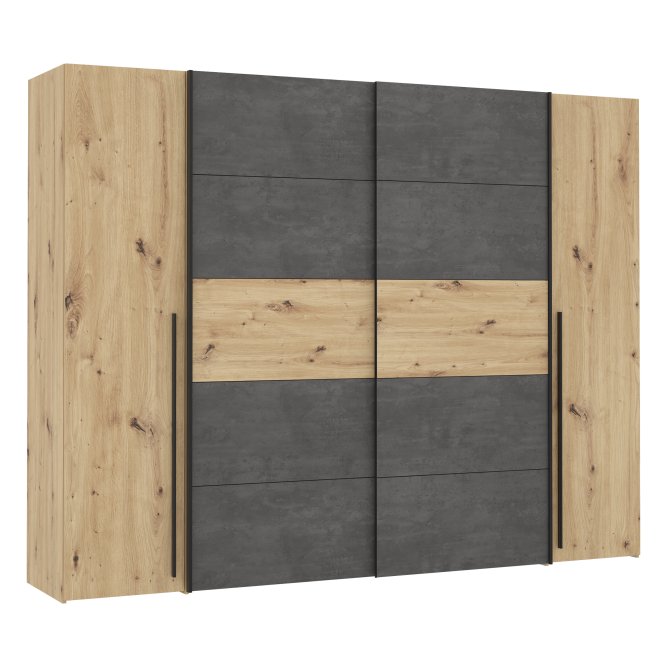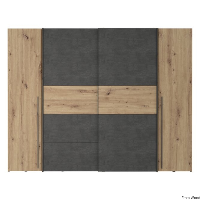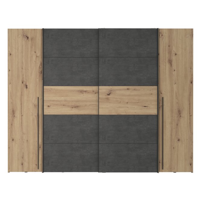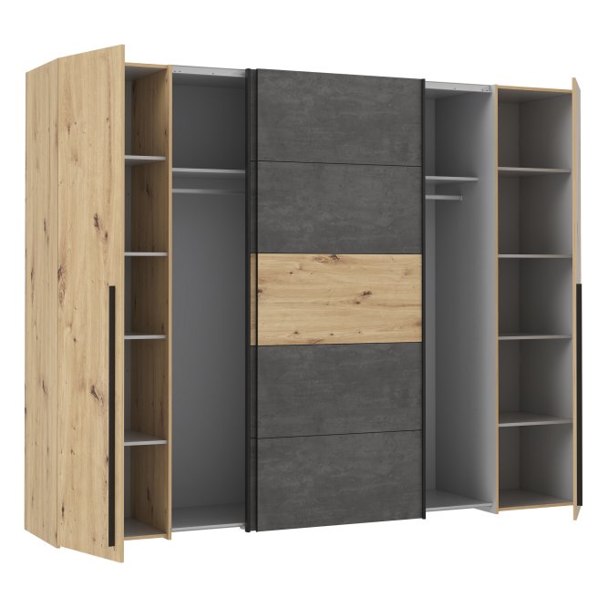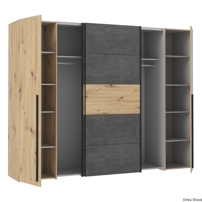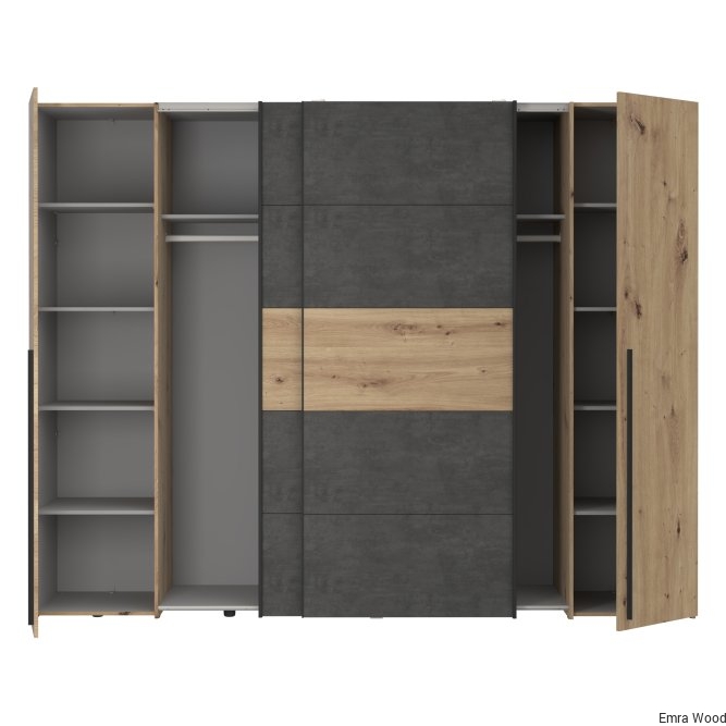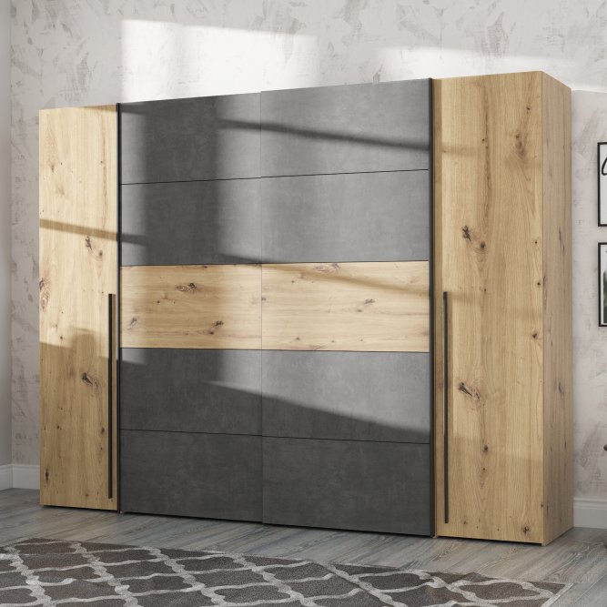 Pojemna szafa do sypialni to praktyczny mebel, w którym pomieści się wiele ubrań. Kolory zastosowane w tej szafie nadadzą spokojnego, ciepłego ale także loftowego klimatu. Szafa niezależnie od aranżacji wnętrza wkomponuje się w każdą przestrzeń.