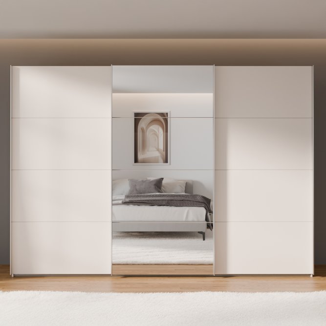 Szafa przesuwna z lustrem i szufladami 270 cm Biały