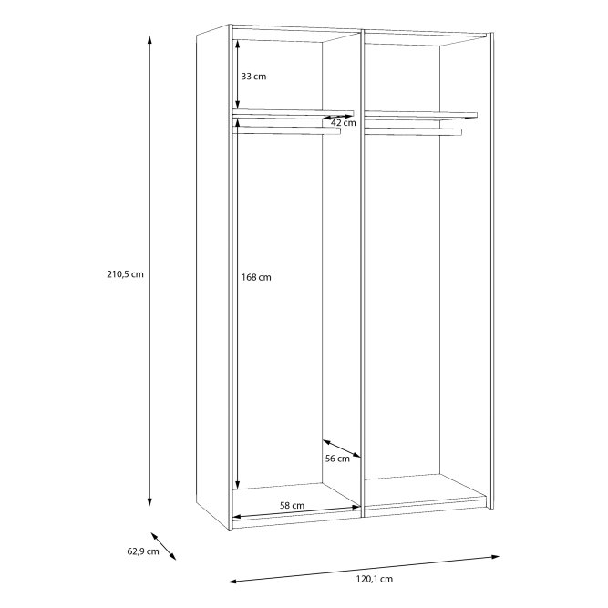 Wymiary: 120.1 x 210.5 x 62.9 cm