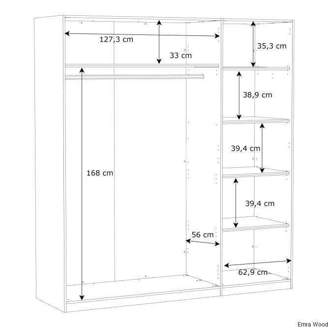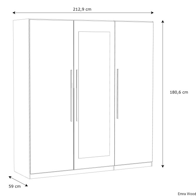 • Przestronna szafa o wymiarach: szerokość 180,6 cm x wysokość 212,9 cm x głębokość 59 cm