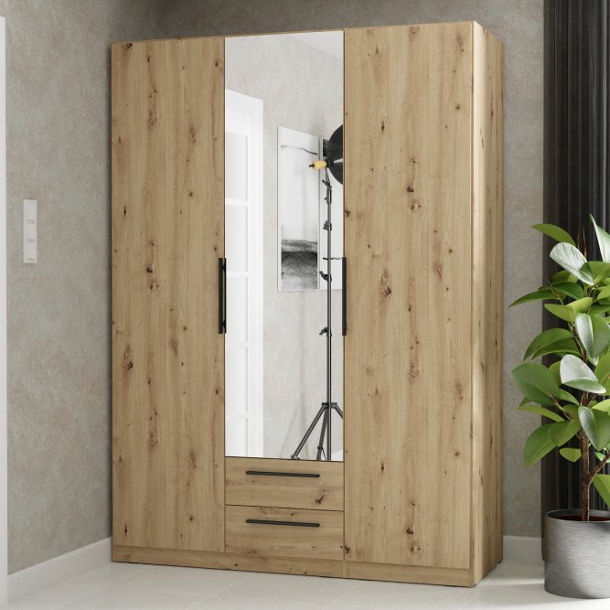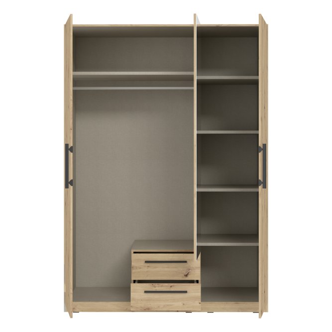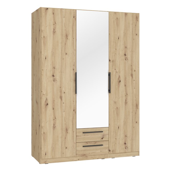 Ta 3-drzwiowa szafa CADIXO sprawi, że sypialnia i przedpokój zyska wyróżniający element aranżacji i funkcjonalny mebel. Praktyczne wnętrze szafy zagwarantuje wygodę w przechowywaniu ubrań, pościeli i innych rzeczy osobistych. Pomogą w tym 2 szuflady oraz 6 głębokich półek. Zestaw szafę z innymi elementami CADIXO i stwóz nowoczesną aranżację.