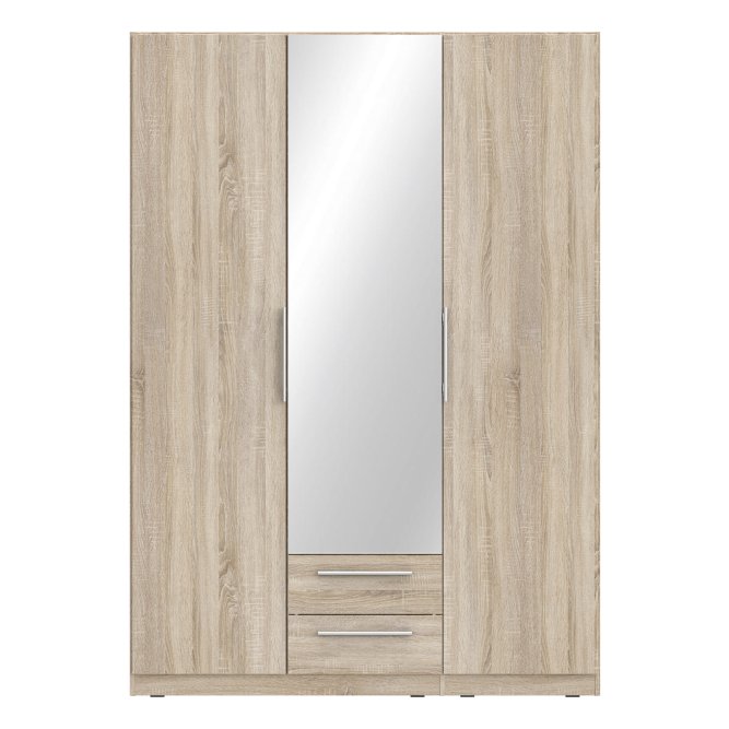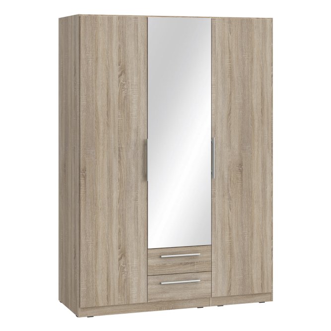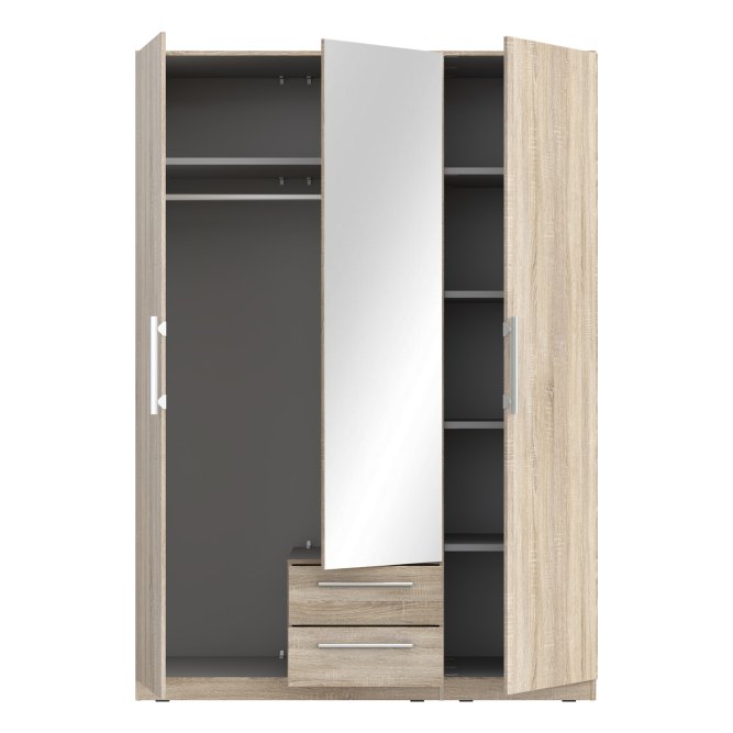 Pojemna, trzydrzwiowa szafa to doskonałe uzupełnienie aranżacji sypialni, przedpokoju lub pokoju młodzieżowego, które zapewni optymalne zagospodarowanie przestrzeni. Obszerne wnętrze szafy zagwarantuje niezwykłą wygodę w przechowywaniu ubrań, pościeli i innych rzeczy osobistych. Nowoczesny design mebla urozmaici wnętrze pomieszczenia i doda mu eleganckiego charakteru.