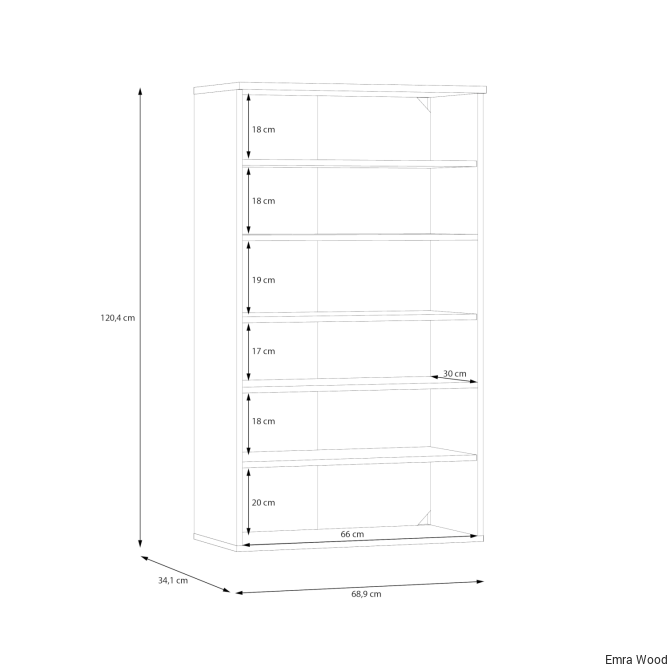 Szerokość: 68,9 cm x wysokość: 120,4 cm x głębokość: 34,1 cm