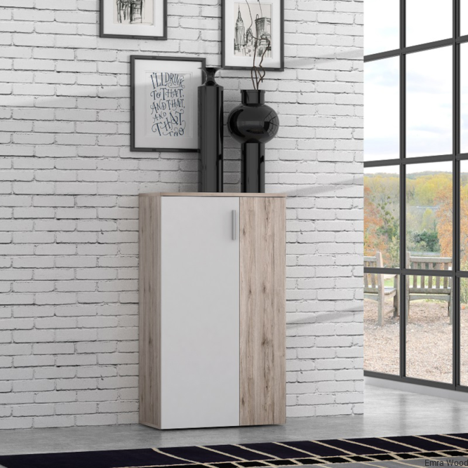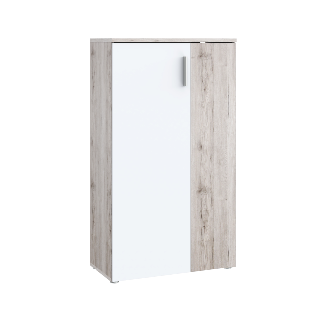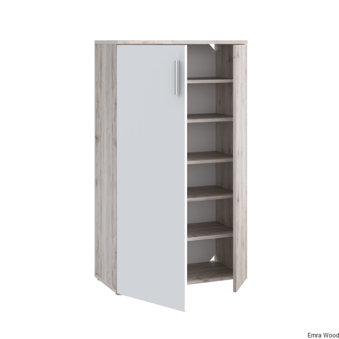 Wysoka szafka na buty o szerokości niemal 70 cm sprawdzi się jako praktyczny dodatek do przedpokoju, a za sprawą kolorystyki będzie modnym akcentem aranżacji wnętrza w stylu skandynawskim. Za drzwiczkami znajduje się aż sześć poziomów na przechowywanie obuwia oraz innych rzeczy osobistych. Dzięki tej szafce w Twoim przedpokoju zapanuje porządek i każda para butów będzie miała swoje miejsce.