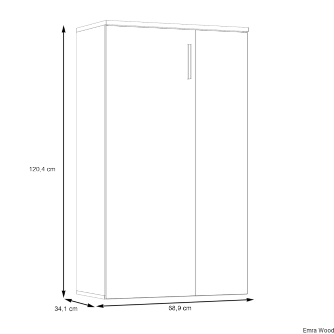 Szerokość: 68,9 cm x wysokość: 120,4 cm x głębokość: 34,1 cm