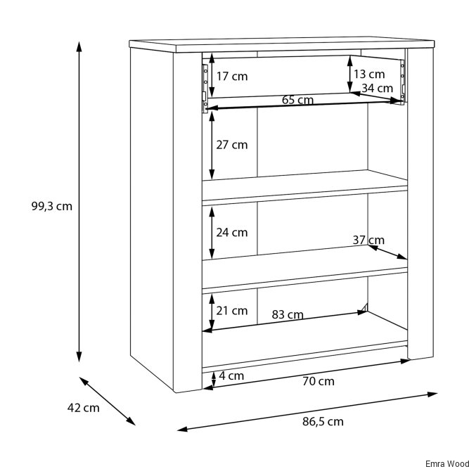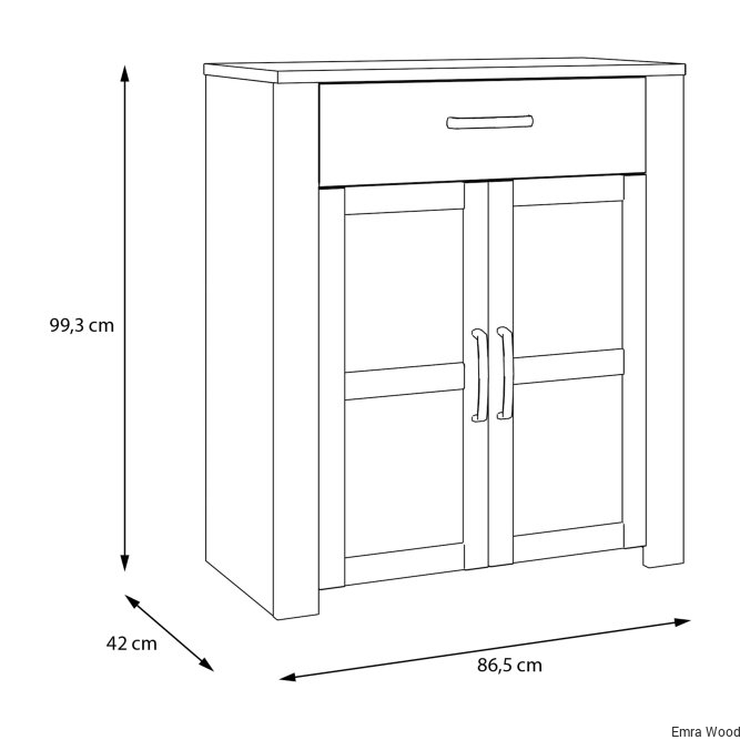 Mebel o wymiarach: 86,4 cm szerokości, 99,3 cm wysokości oraz 42 cm głębokości