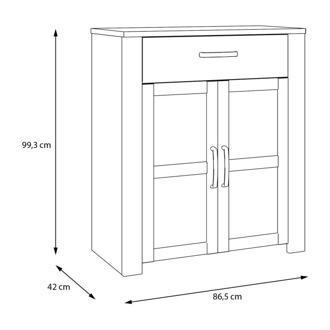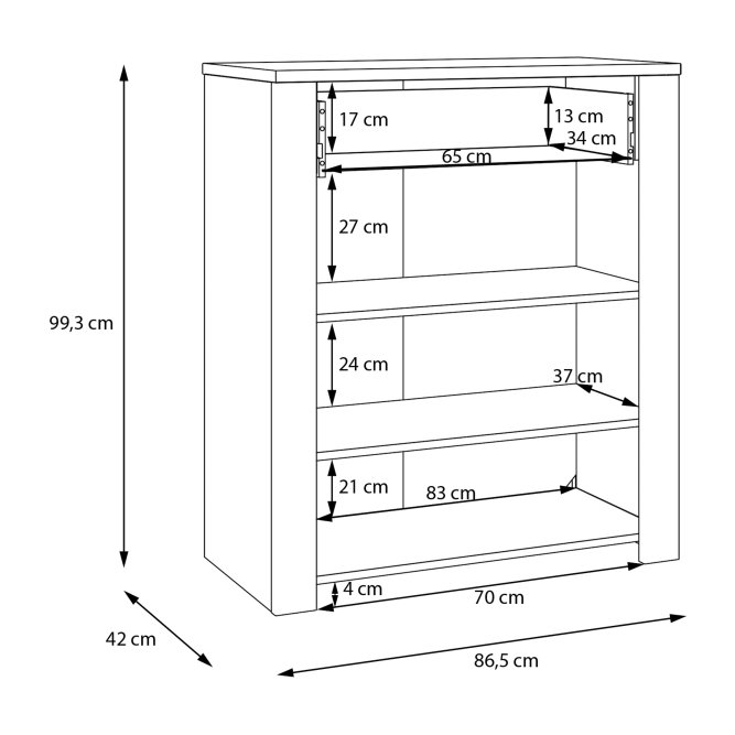 Mebel o wymiarach 86,4 cm szerokości, 99,3 cm wysokości oraz 42 cm głębokości