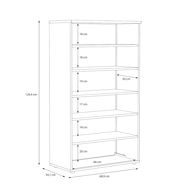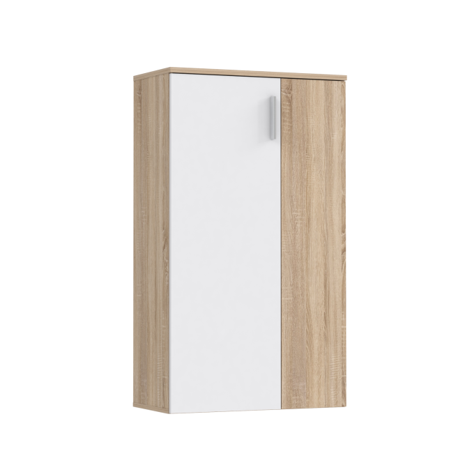 Wysoka szafka na buty o szerokości niemal 70 cm sprawdzi się jako praktyczny dodatek do przedpokoju, a za sprawą połączenia kolorów: Bialy/Dąb Sonoma będzie modnym akcentem aranżacji wnętrza w stylu skandynawskim. Za drzwiczkami znajduje się aż sześć poziomów na przechowywanie obuwia oraz innych rzeczy osobistych. Dzięki tej szafce w Twoim przedpokoju zapanuje porządek i każda para butów będzie miała swoje miejsce.