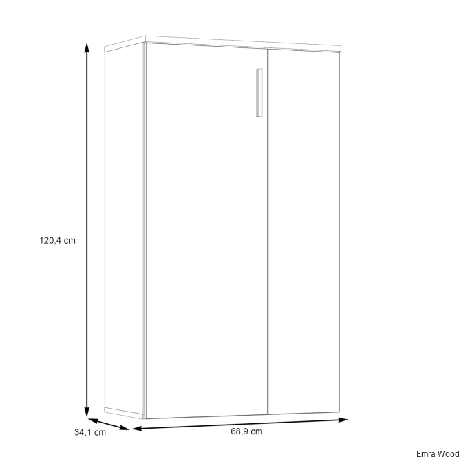 Szerokość: 68,9 cm x wysokość: 120,4 cm x głębokość: 34,1 cm