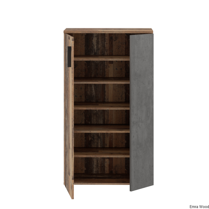 Wysoka szafka na buty o szerokości niemal 70 cm sprawdzi się jako praktyczny dodatek do przedpokoju, a za sprawą kolorystyki będzie modnym akcentem aranżacji wnętrza w stylu retro, loft lub vintage. Za drzwiczkami znajduje się aż sześć poziomów na przechowywanie obuwia oraz innych rzeczy osobistych. Dzięki tej szafce w Twoim przedpokoju zapanuje porządek i każda para butów będzie miała swoje miejsce.