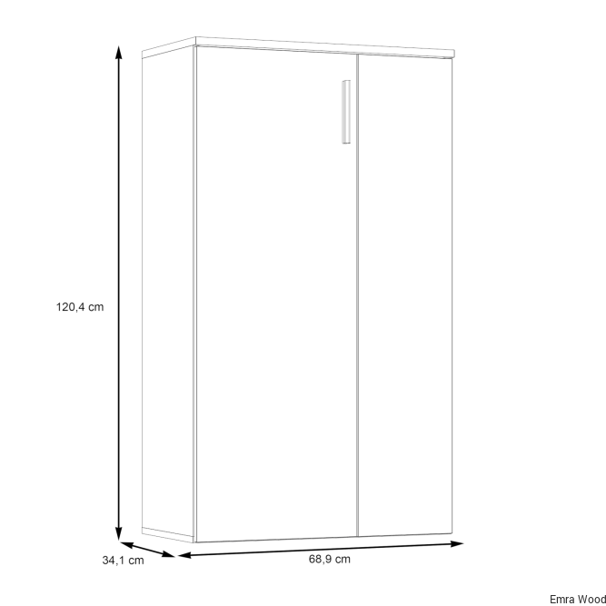 Szerokość: 68,9 cm x wysokość: 120,4 cm x głębokość: 34,1 cm