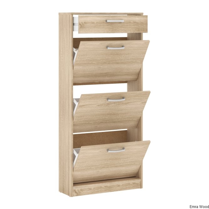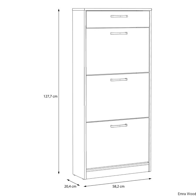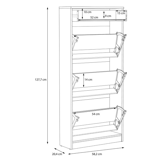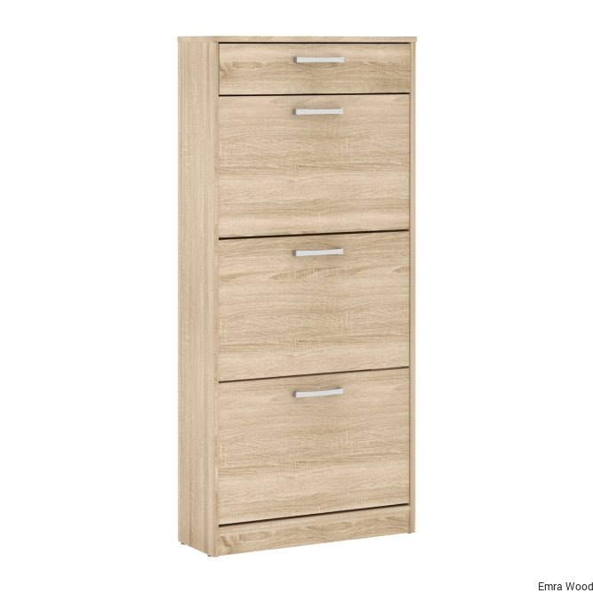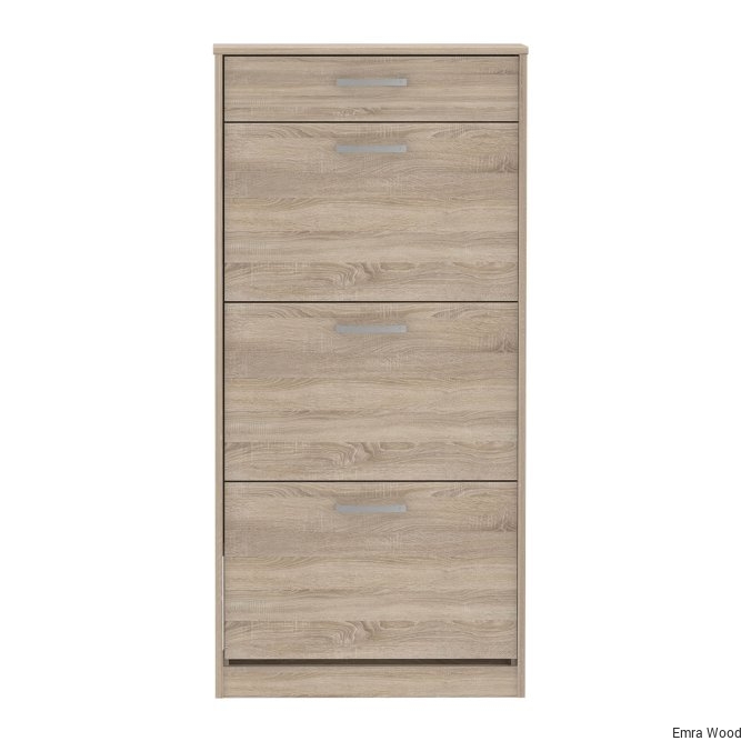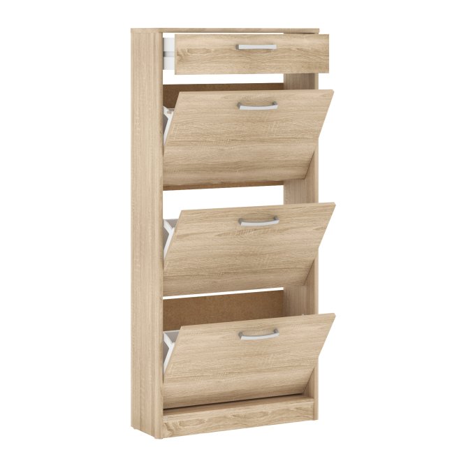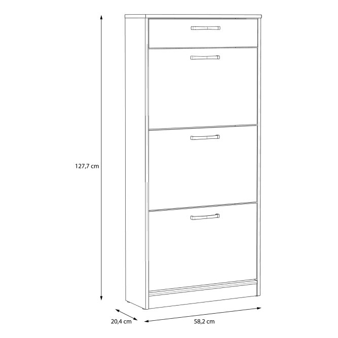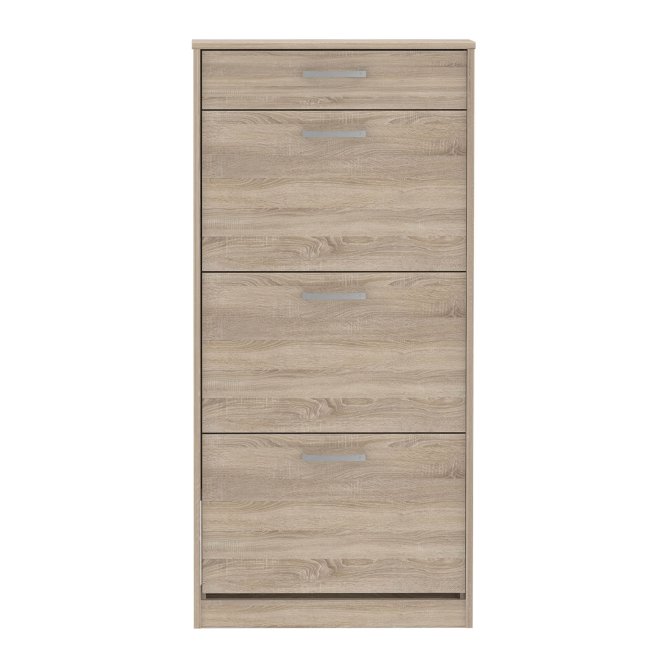 Szafa na buty w stylu klasycznym w dekorze Dębu Sonoma idealnie wpasuje się do każdego przedpokoju oraz garderoby. Dzięki niewielkim wymiarom nie zajmuje dużo przestrzeni, a mimo to jest w stanie pomieścić dużą ilość obuwia.