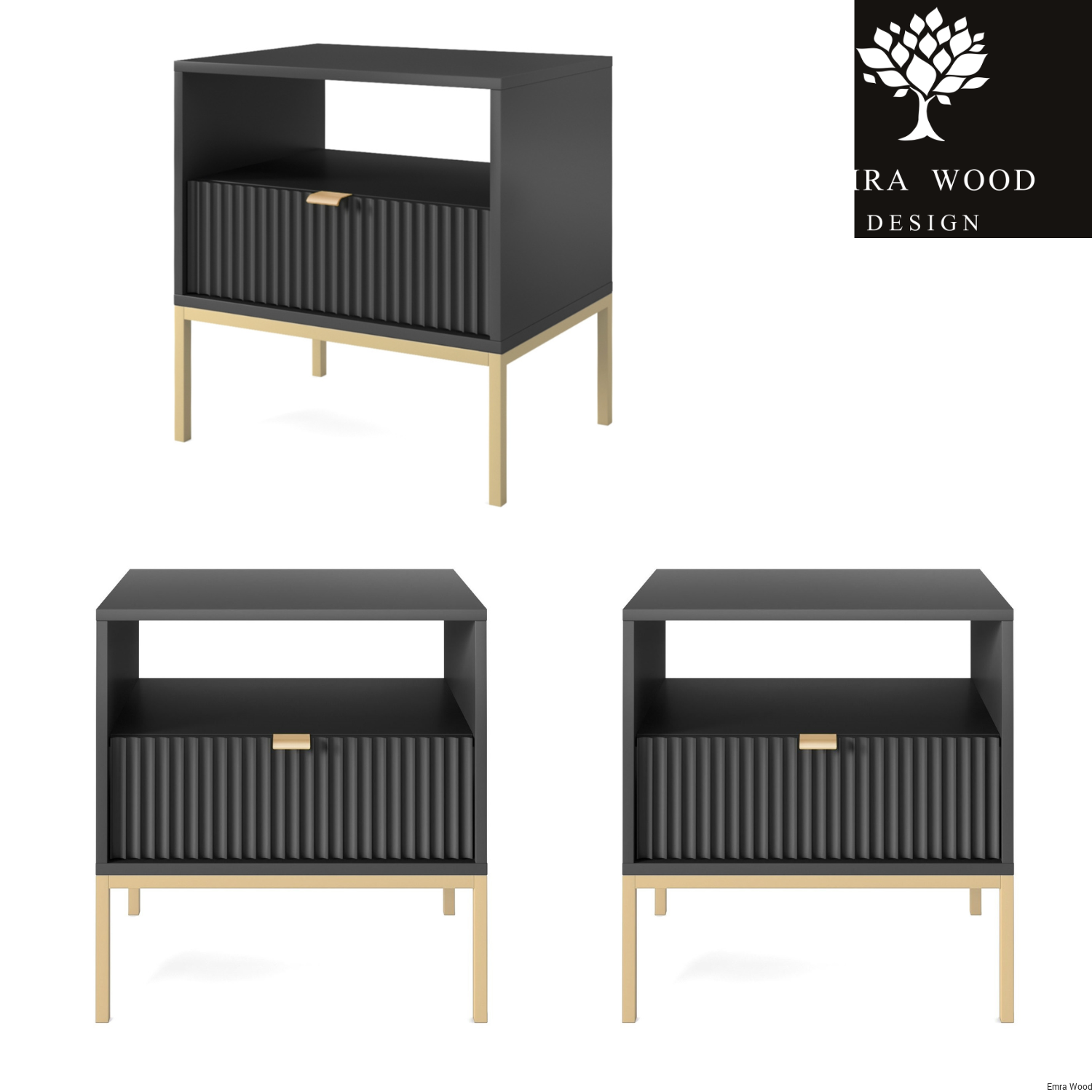 Szafka Nocna Czarno - ZłotaSzafka Nocna Czarno - ZłotaSzafka Nocna Czarno - Złota