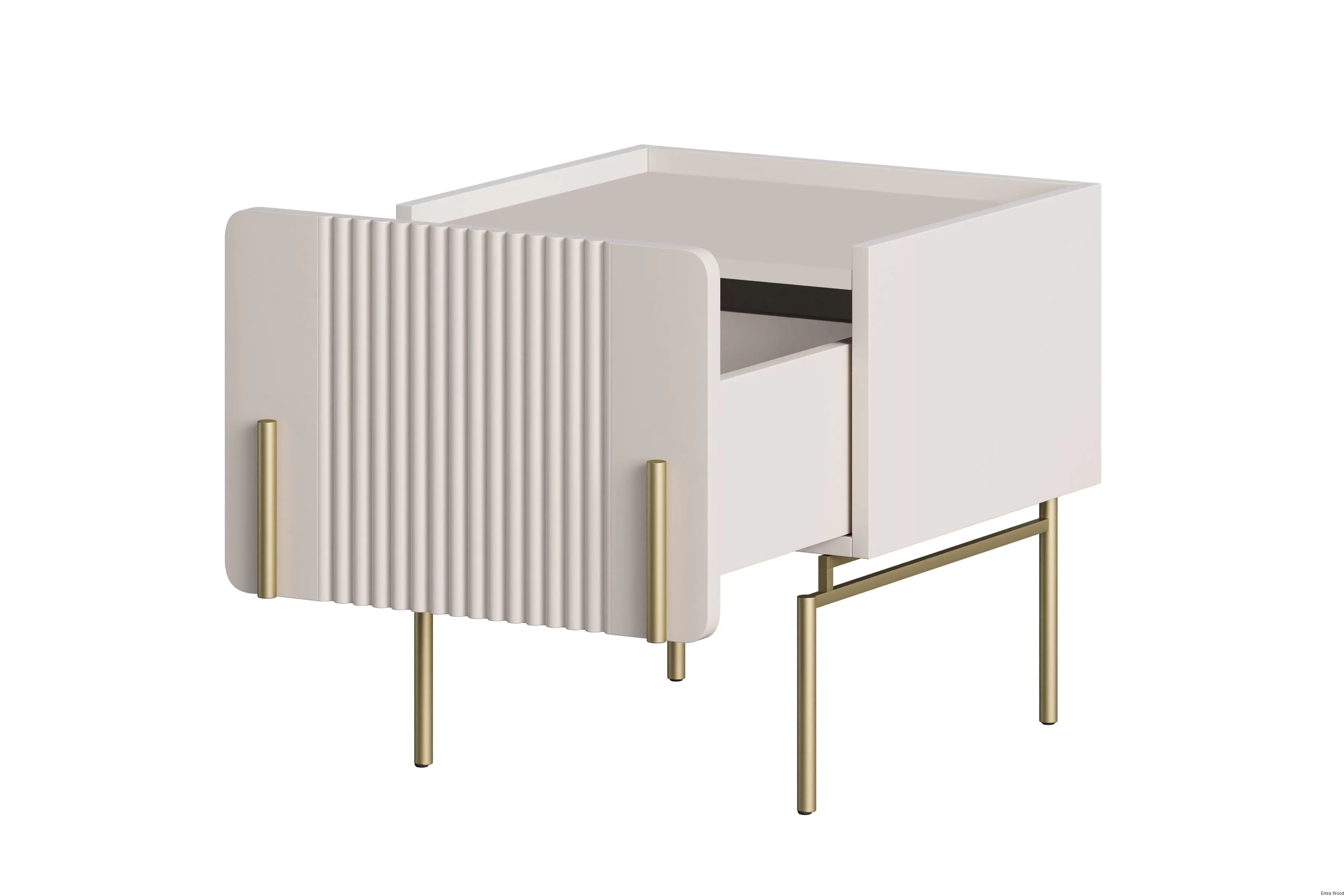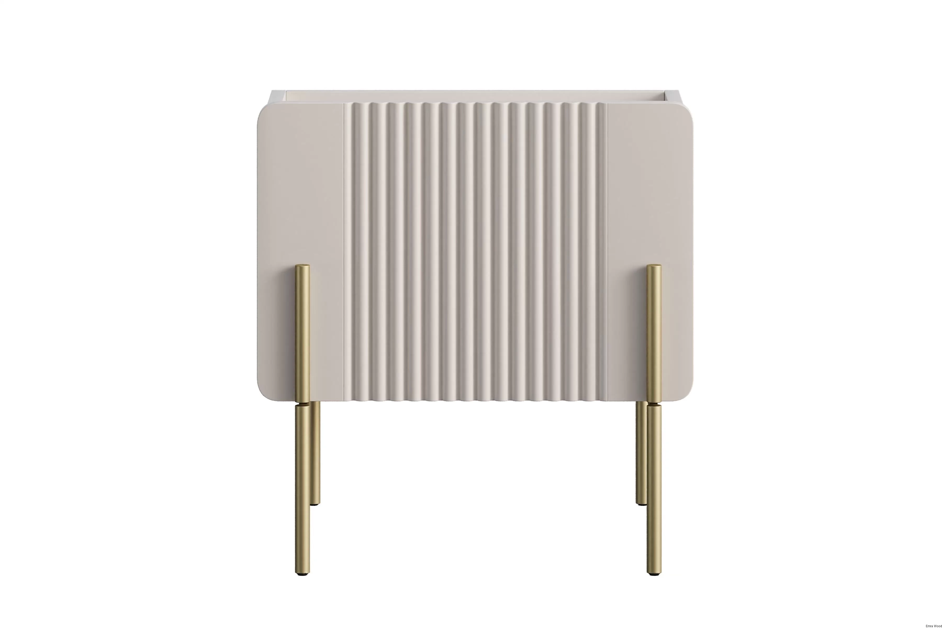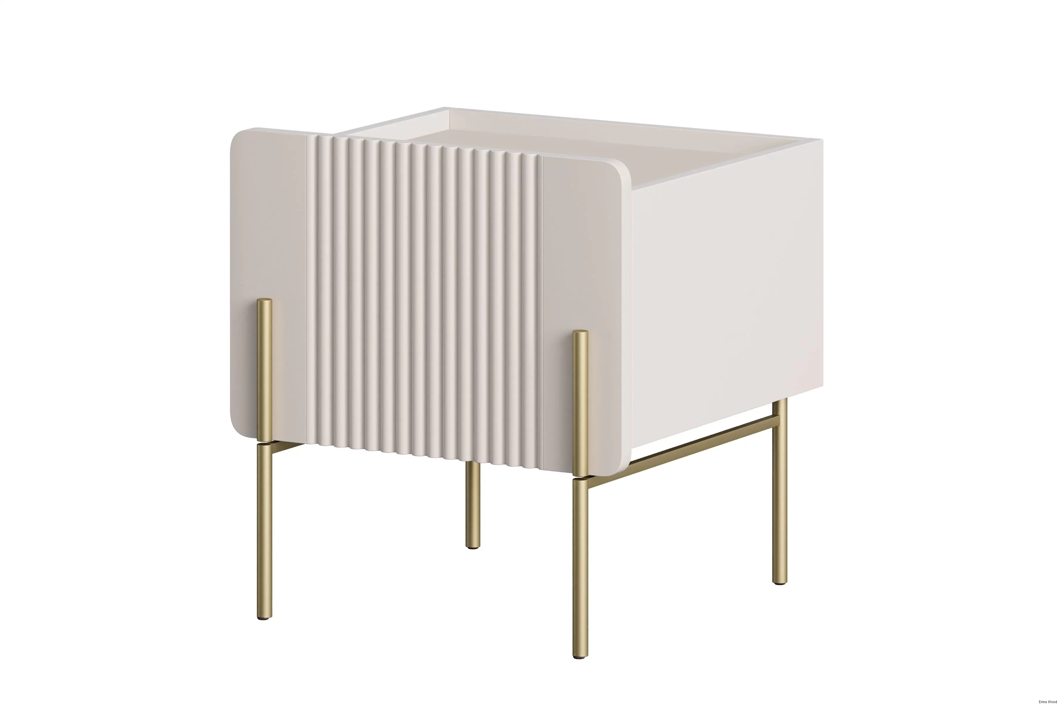 Wyjątkowy design tej szafki nocnej od razu przyciąga wzrok. Subtelna kolorystyka w odcieniu kaszmiru nadaje jej eleganckiego i stylowego charakteru. Złote nóżki dodają meblowi szczypty blasku i prestiżu.