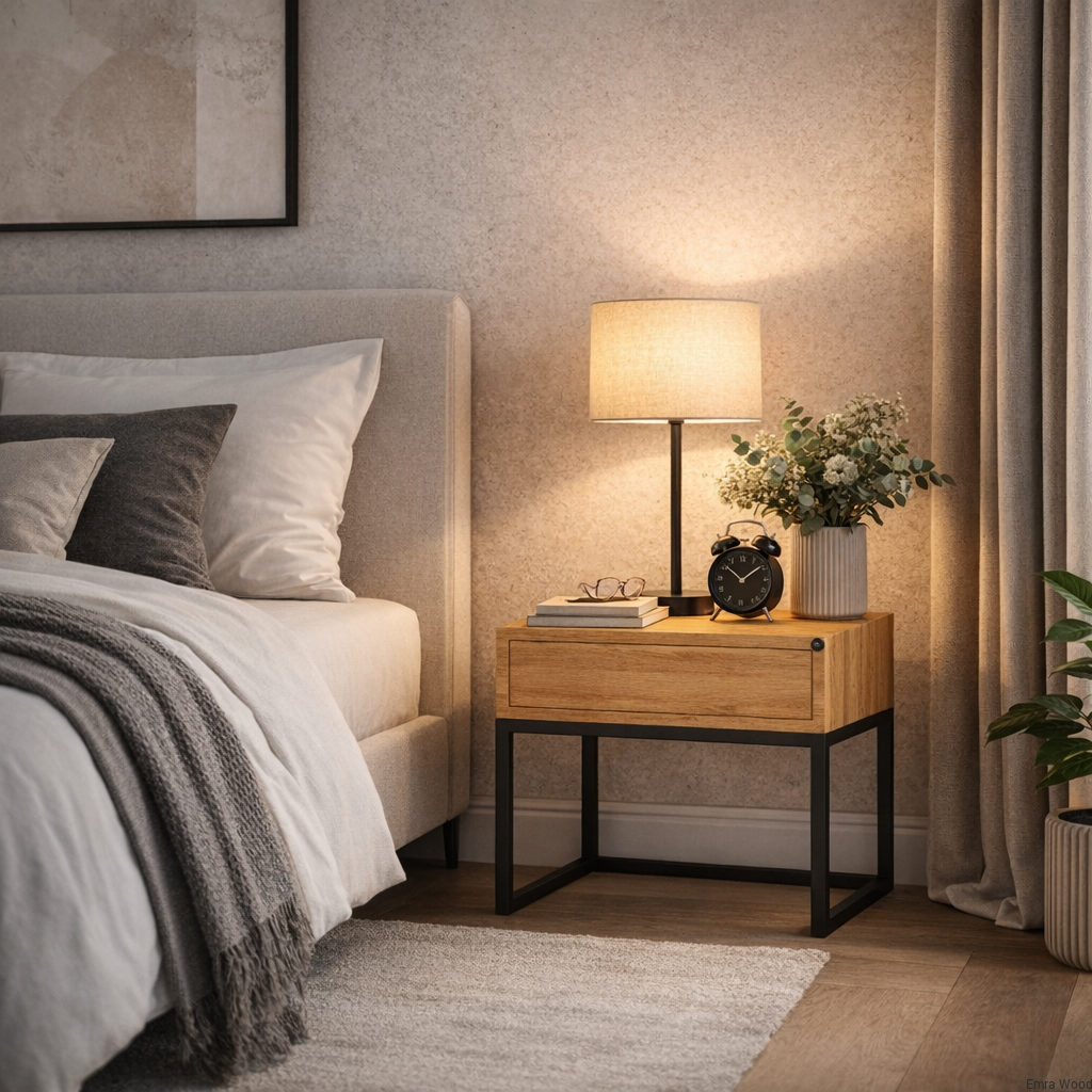 Dębowa szafka nocna to idealne połączenie nowoczesnego wzornictwa z tradycyjnym rzemiosłem. Wykonana z litego drewna dębowego i metalu.Prosta, geometryczna forma, precyzyjne linie i proporcje sprawiają, że dębowa szafka nocna doskonale pasuje do różnych stylów wnętrzarskich. Bez względu na to, czy urządzasz nowoczesną sypialnię, industrialny loft czy elegancką przestrzeń, szafka nocna stanie się doskonałym uzupełnieniem każdego wnętrza.