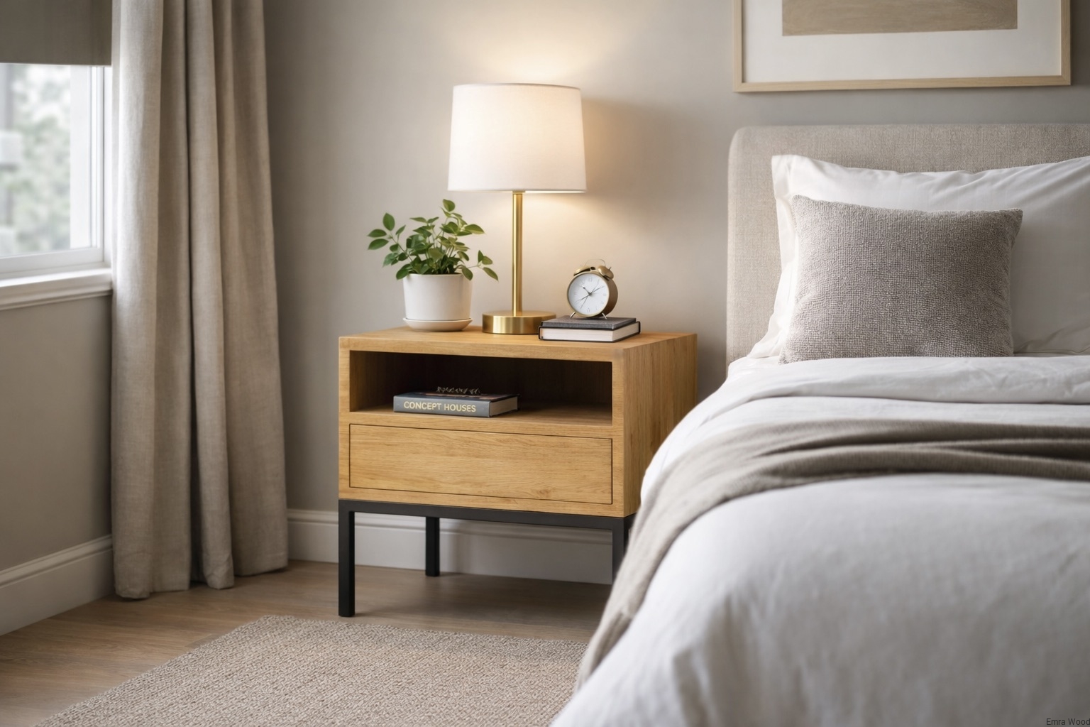 Dębowa szafka nocna to idealne połączenie nowoczesnego wzornictwa z tradycyjnym rzemiosłem. Wykonana z litego drewna dębowego i metalu.Prosta, geometryczna forma, precyzyjne linie i proporcje sprawiają, że dębowa szafka nocna doskonale pasuje do różnych stylów wnętrzarskich. Bez względu na to, czy urządzasz nowoczesną sypialnię, industrialny loft czy elegancką przestrzeń, szafka nocna stanie się doskonałym uzupełnieniem każdego wnętrza.