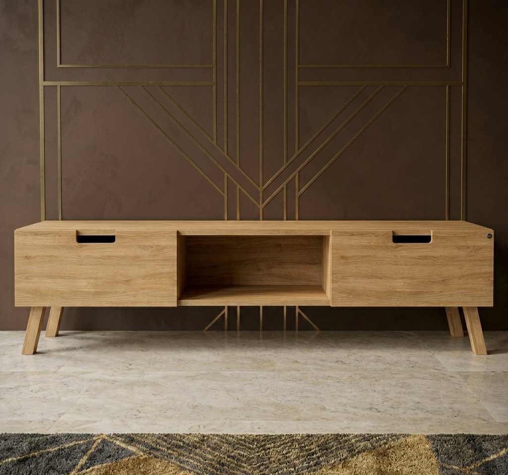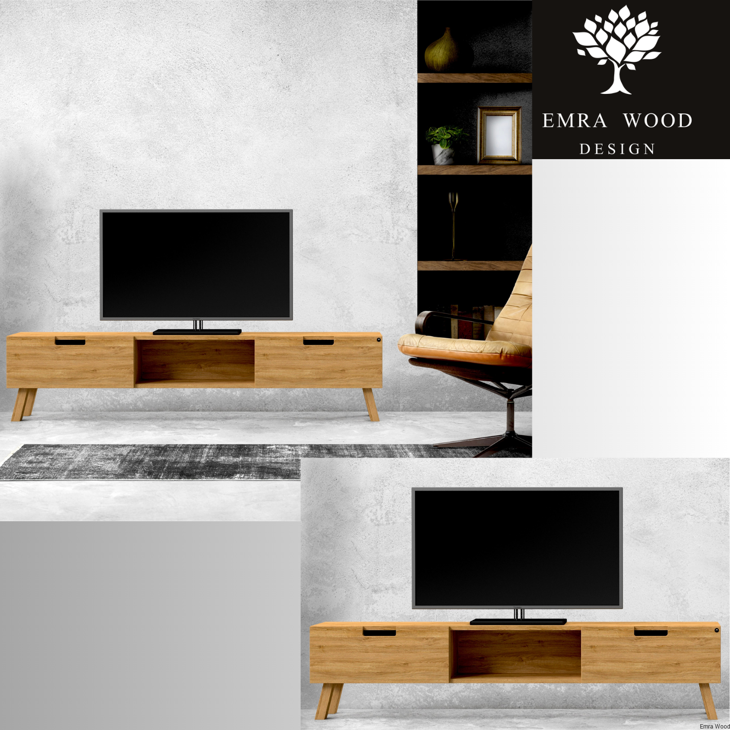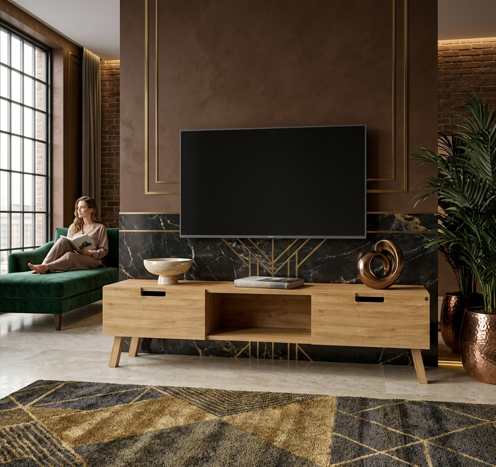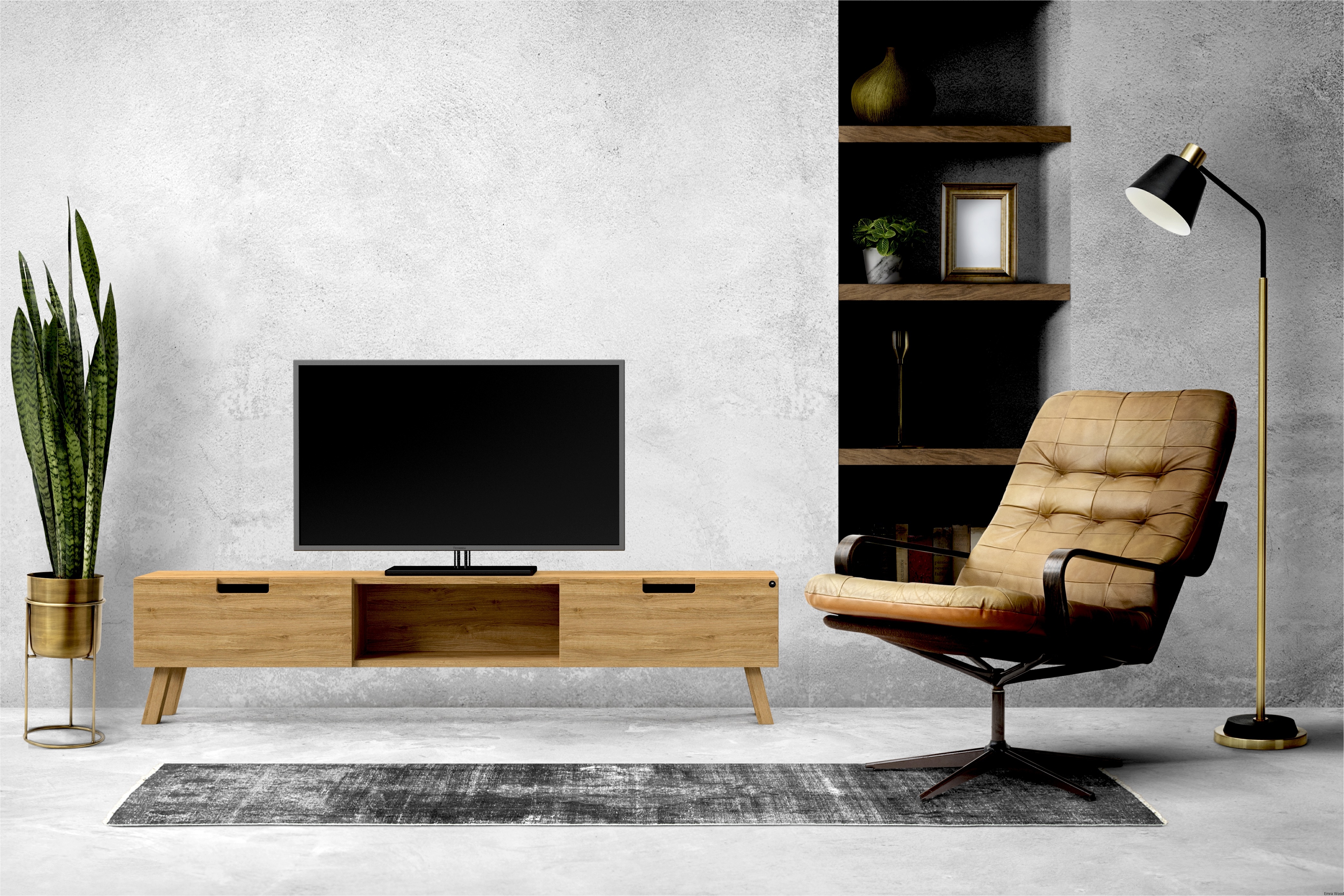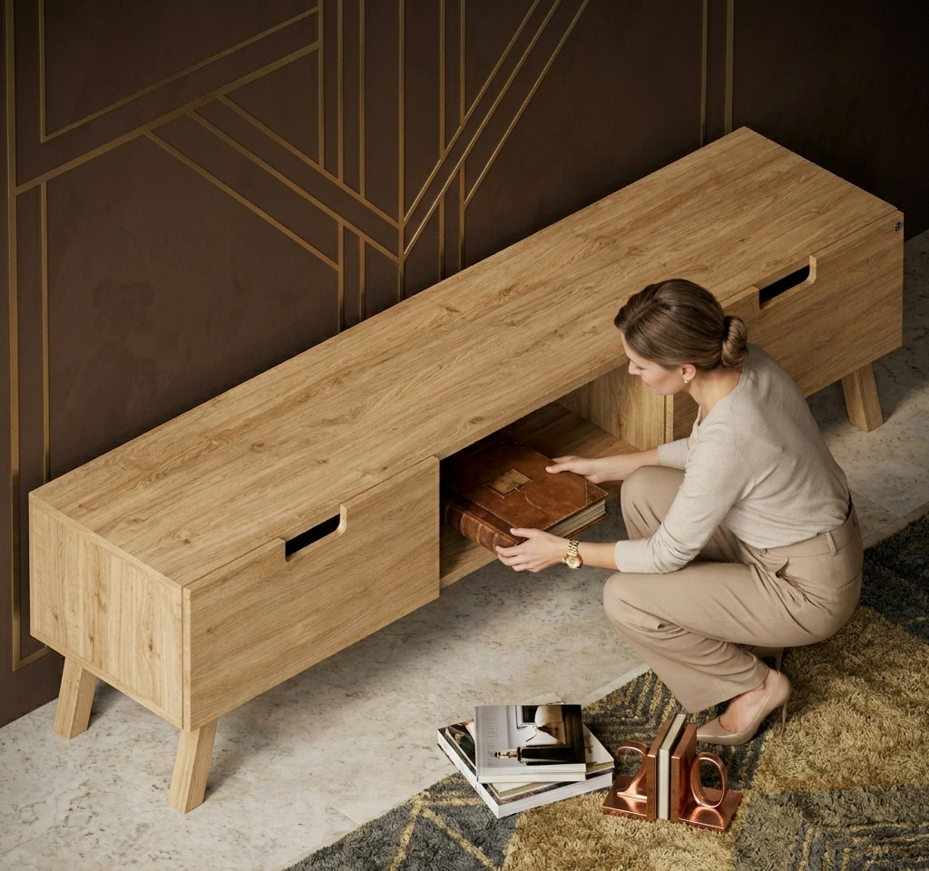 SZAFKA RTV / Gatunek Drewna DĄB LOFT / / Stelaż Naturalny Lakier model RTV-16