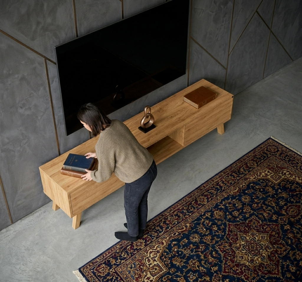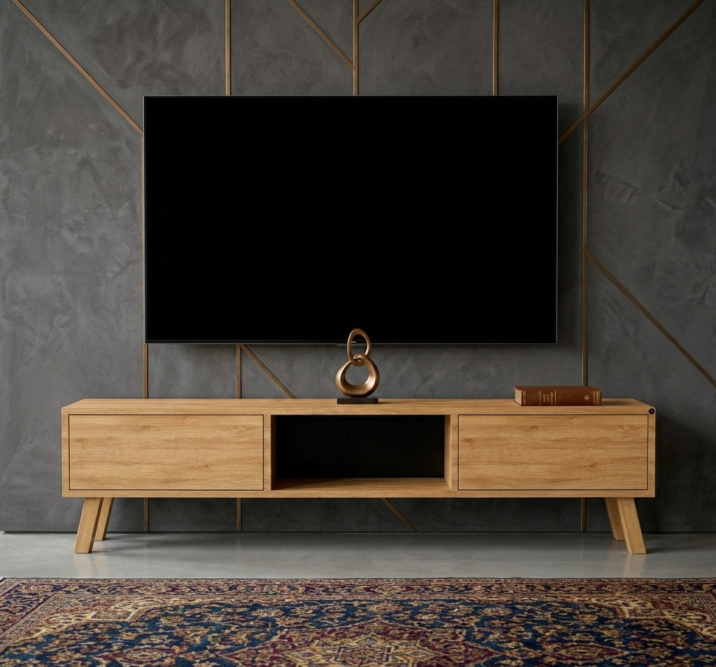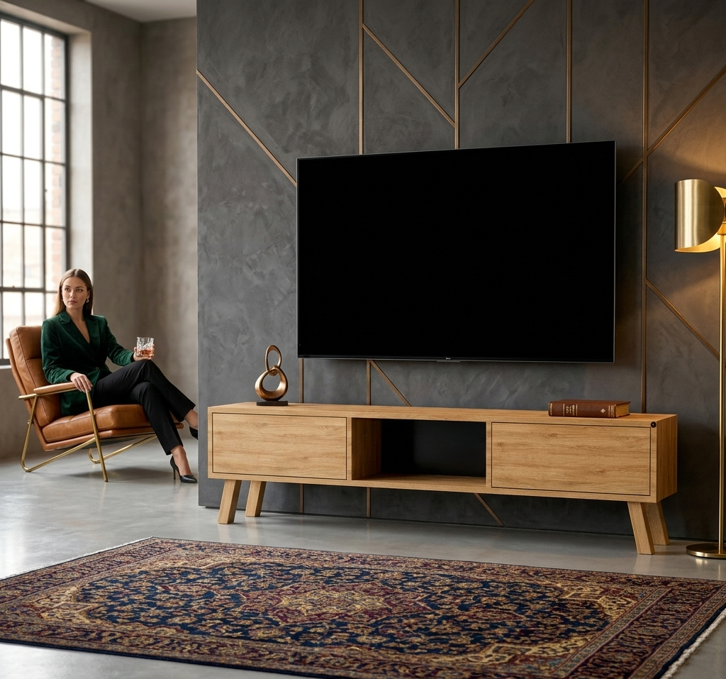 SZAFKA RTV / Gatunek Drewna DĄB LOFT / / Stelaż Naturalny Lakier model RTV-18