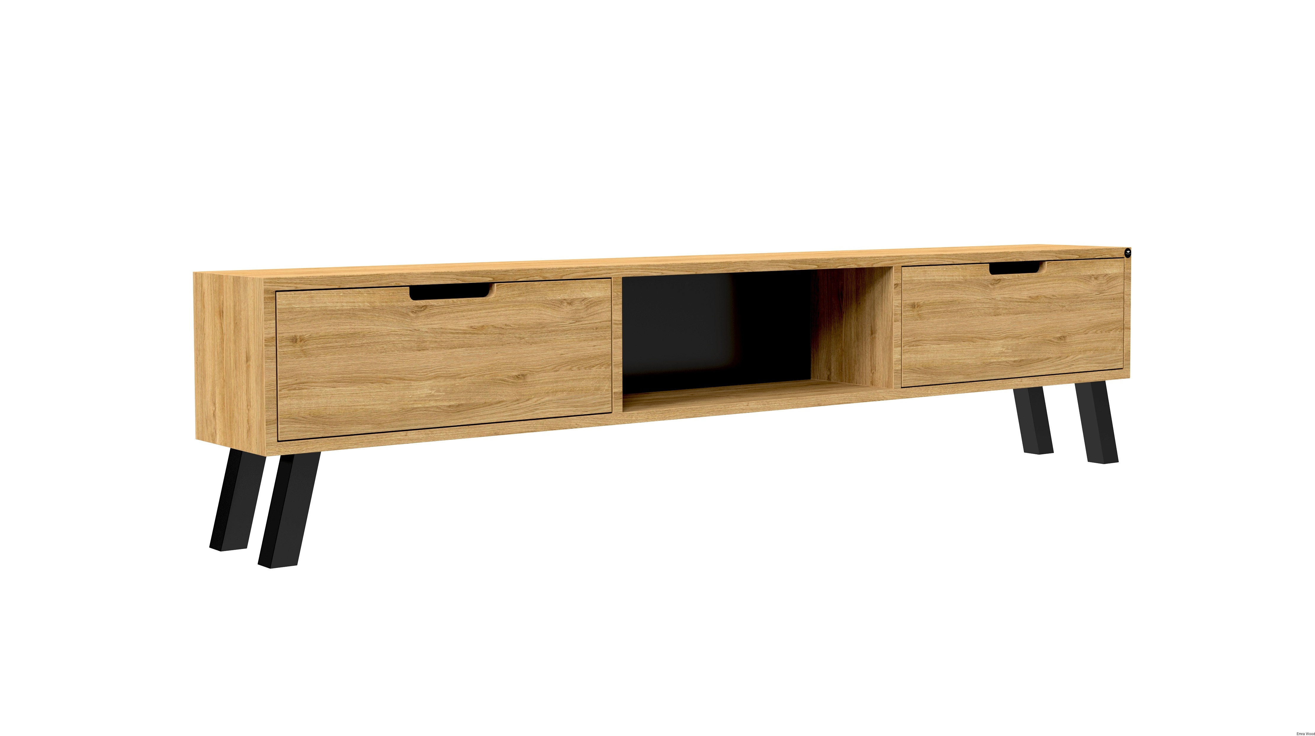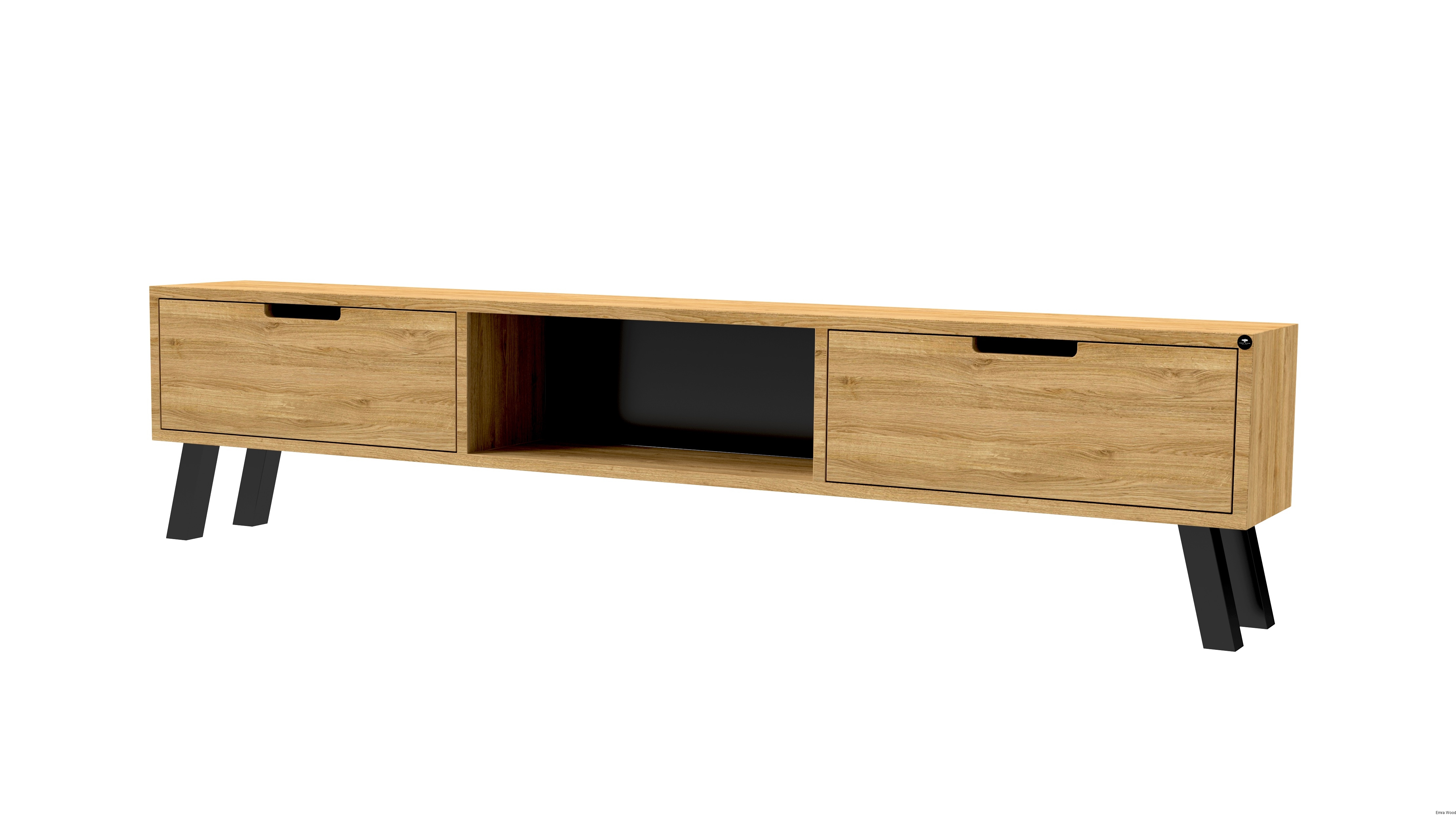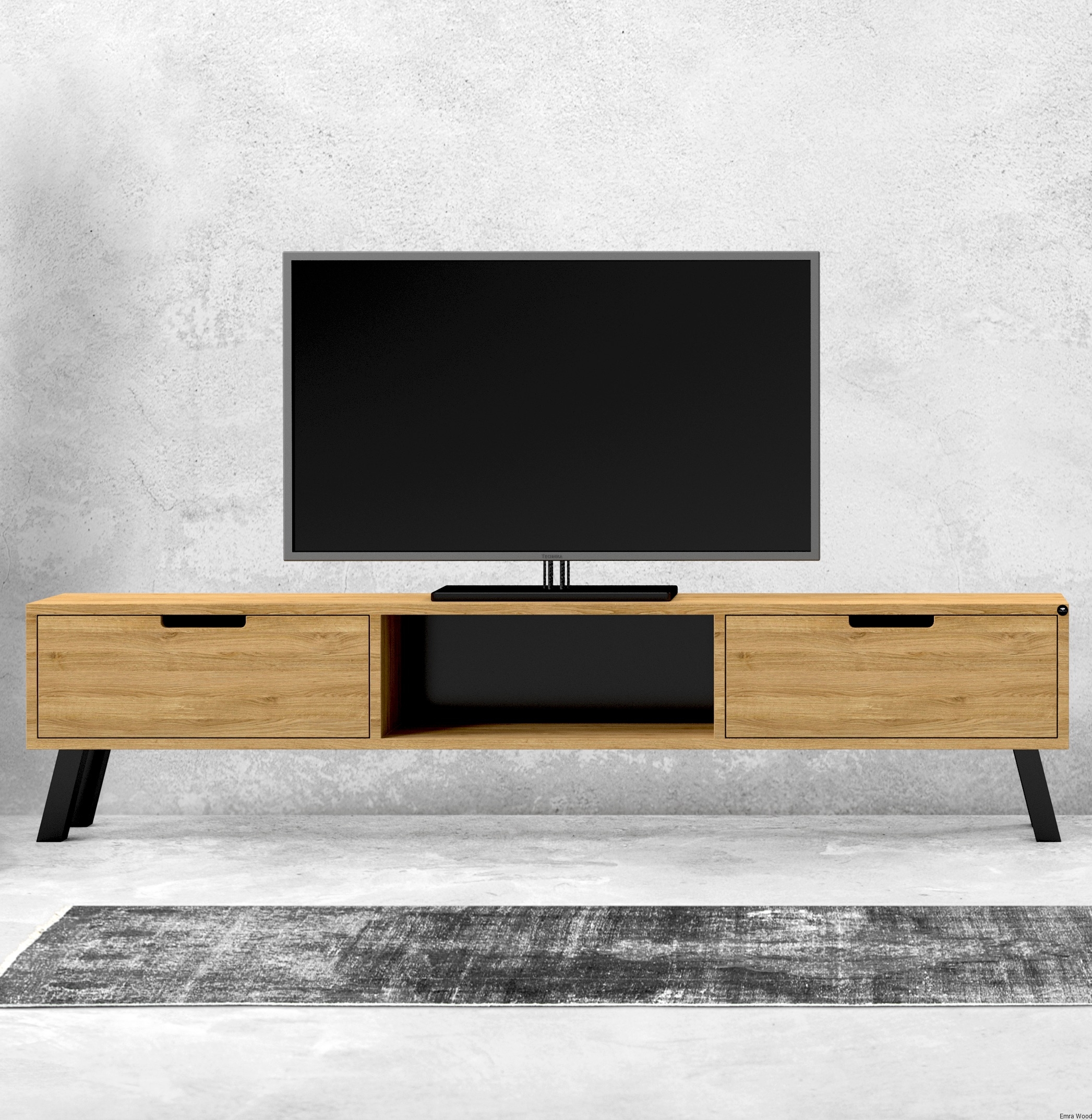 SZAFKA RTV / Gatunek Drewna DĄB LOFT / / Stelaż Naturalny Lakier / noga metalowa czarna / model RTV-21
