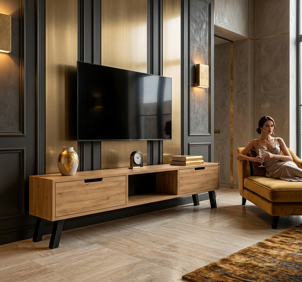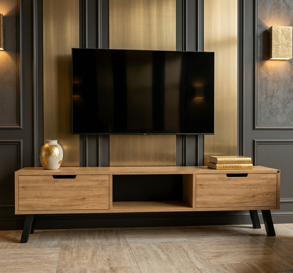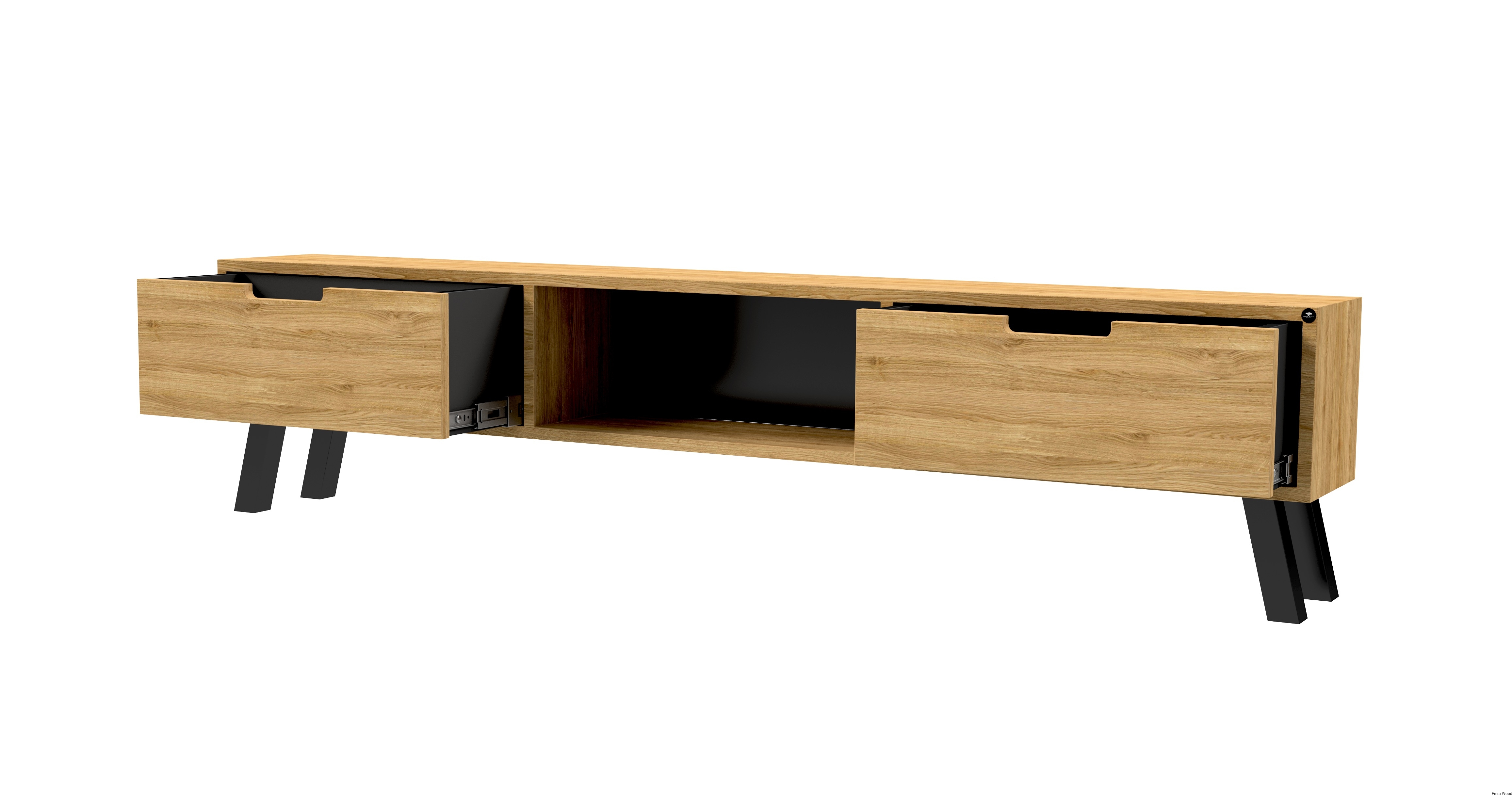 SZAFKA RTV / Gatunek Drewna DĄB LOFT / / Stelaż Naturalny Lakier / noga metalowa czarna / model RTV-21