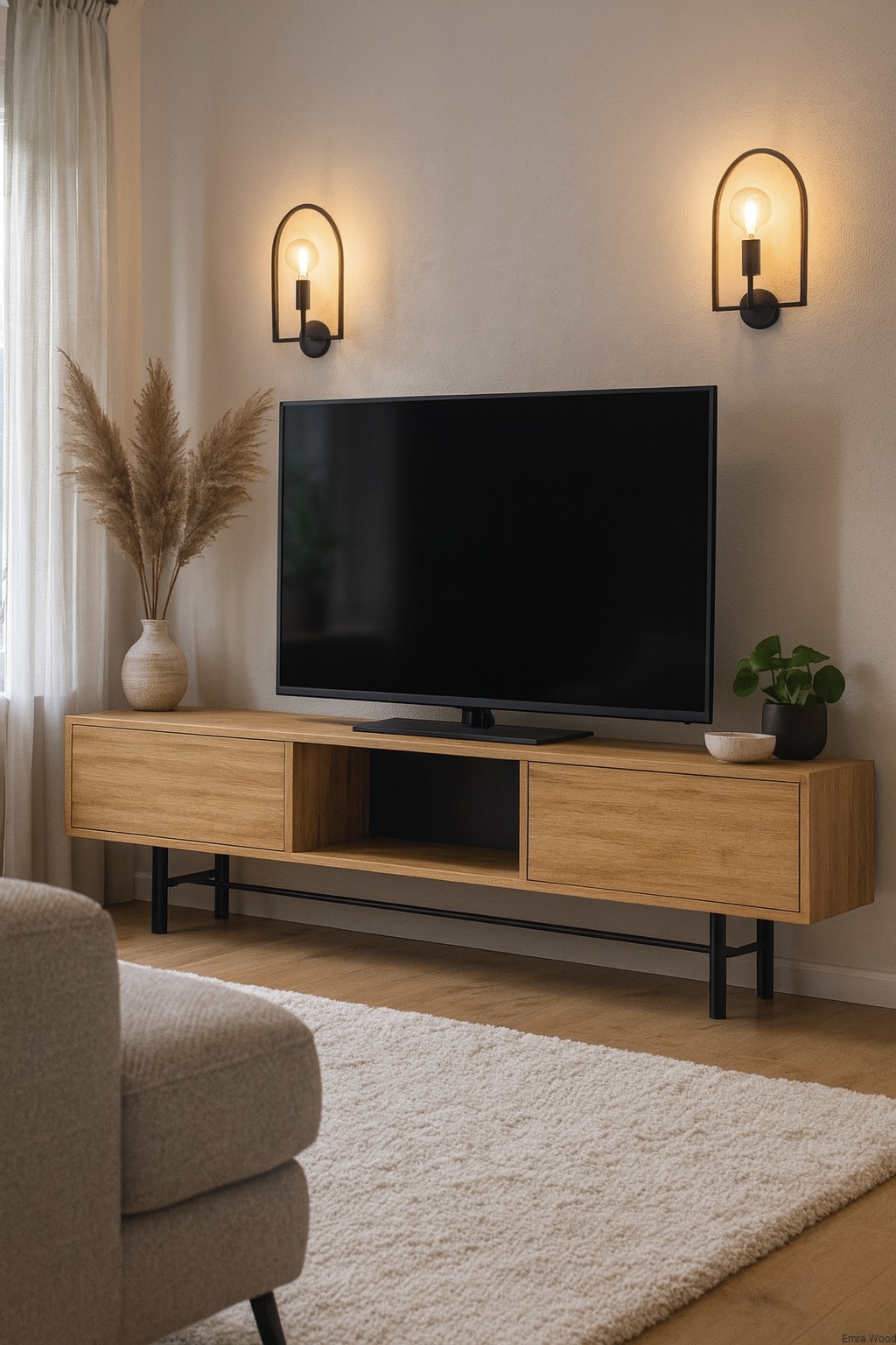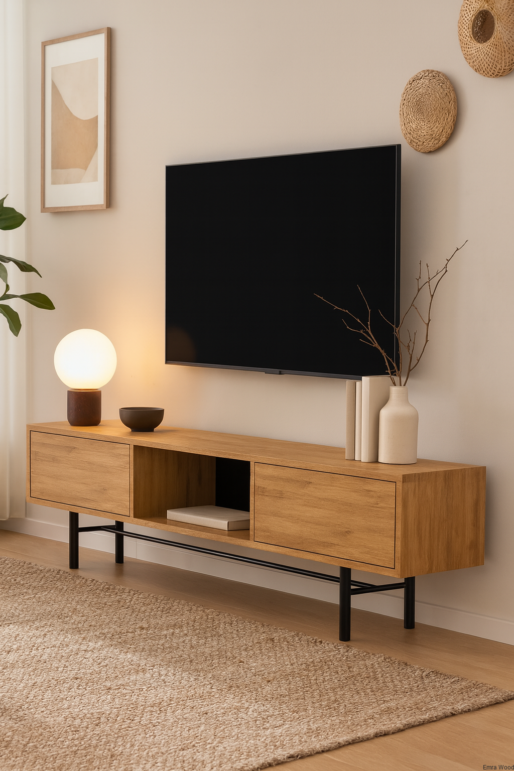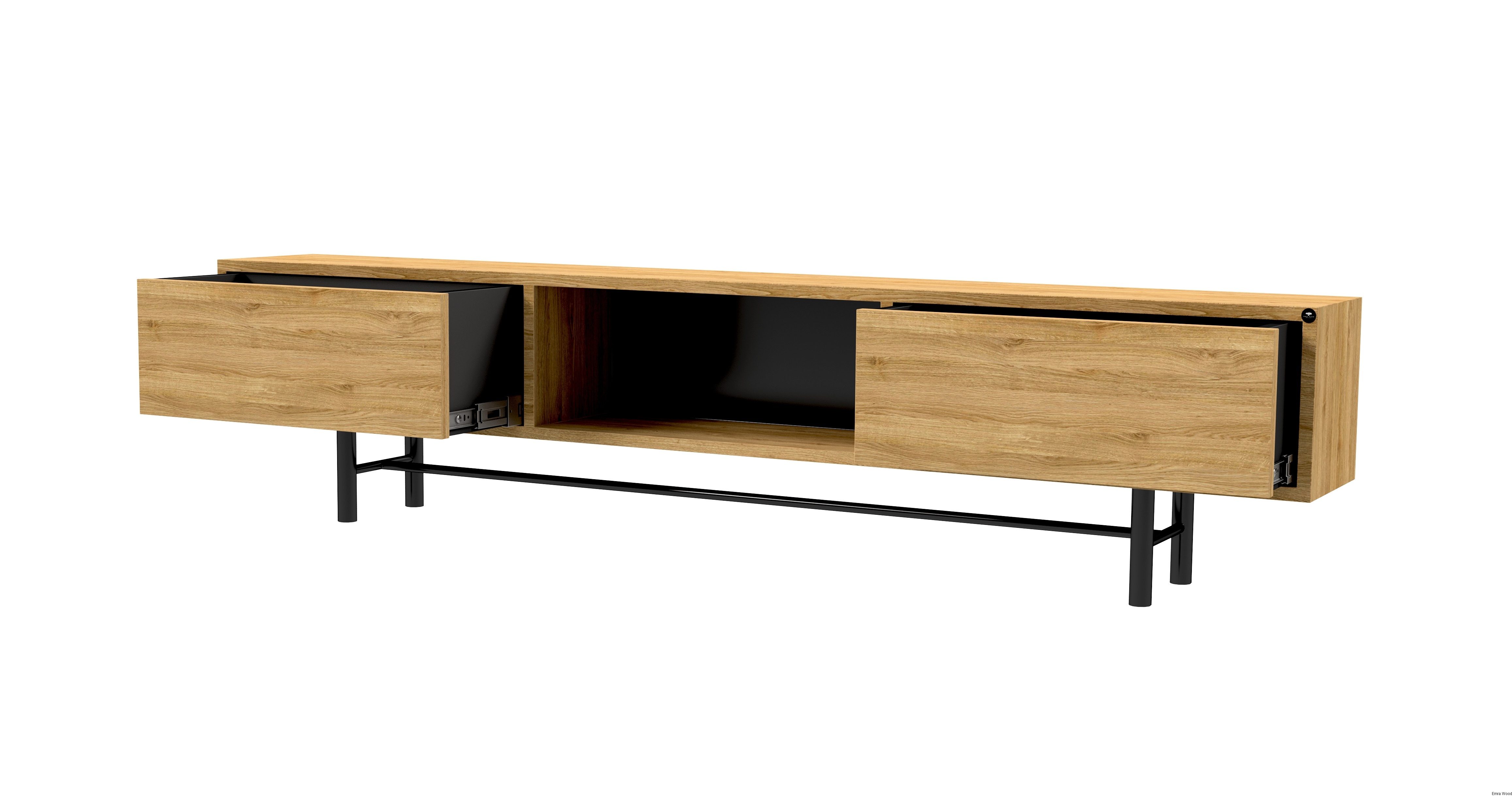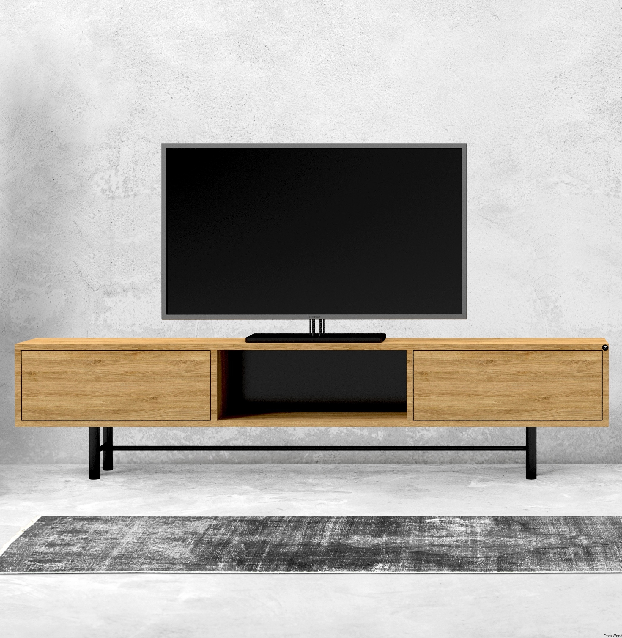 SZAFKA RTV / Gatunek Drewna DĄB LOFT / / Stelaż Naturalny Lakier / noga metalowa czarna / model RTV-22