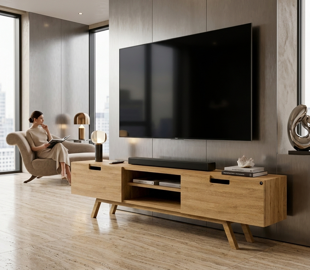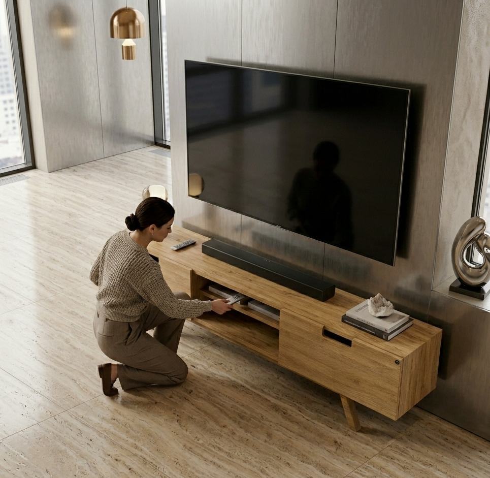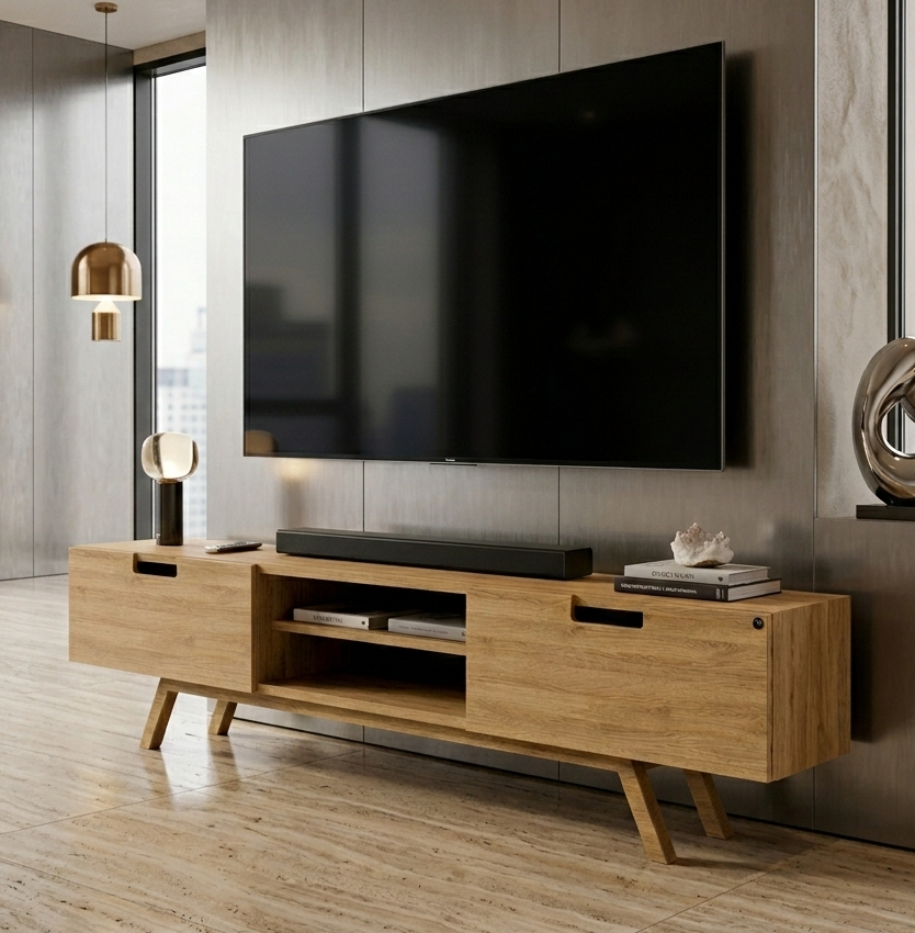 SZAFKA RTV / Gatunek Drewna DĄB LOFT / / Stelaż Naturalny Lakier model RTV-31