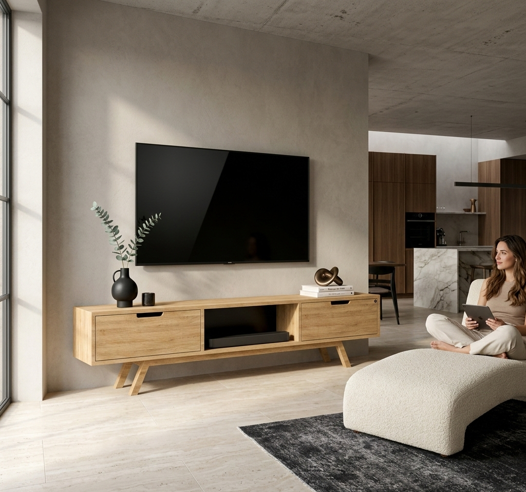 SZAFKA RTV / Gatunek Drewna DĄB LOFT / / Stelaż Naturalny Lakier model RTV-35