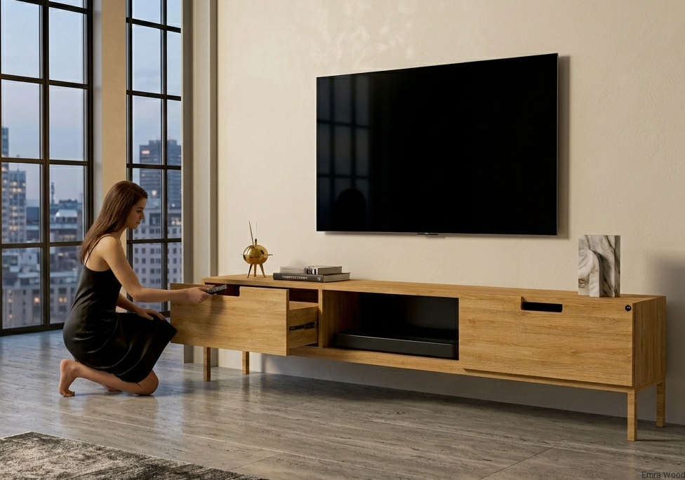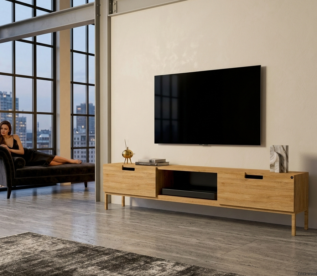 SZAFKA RTV / Gatunek Drewna DĄB LOFT / / Stelaż Naturalny Lakier model RTV-45