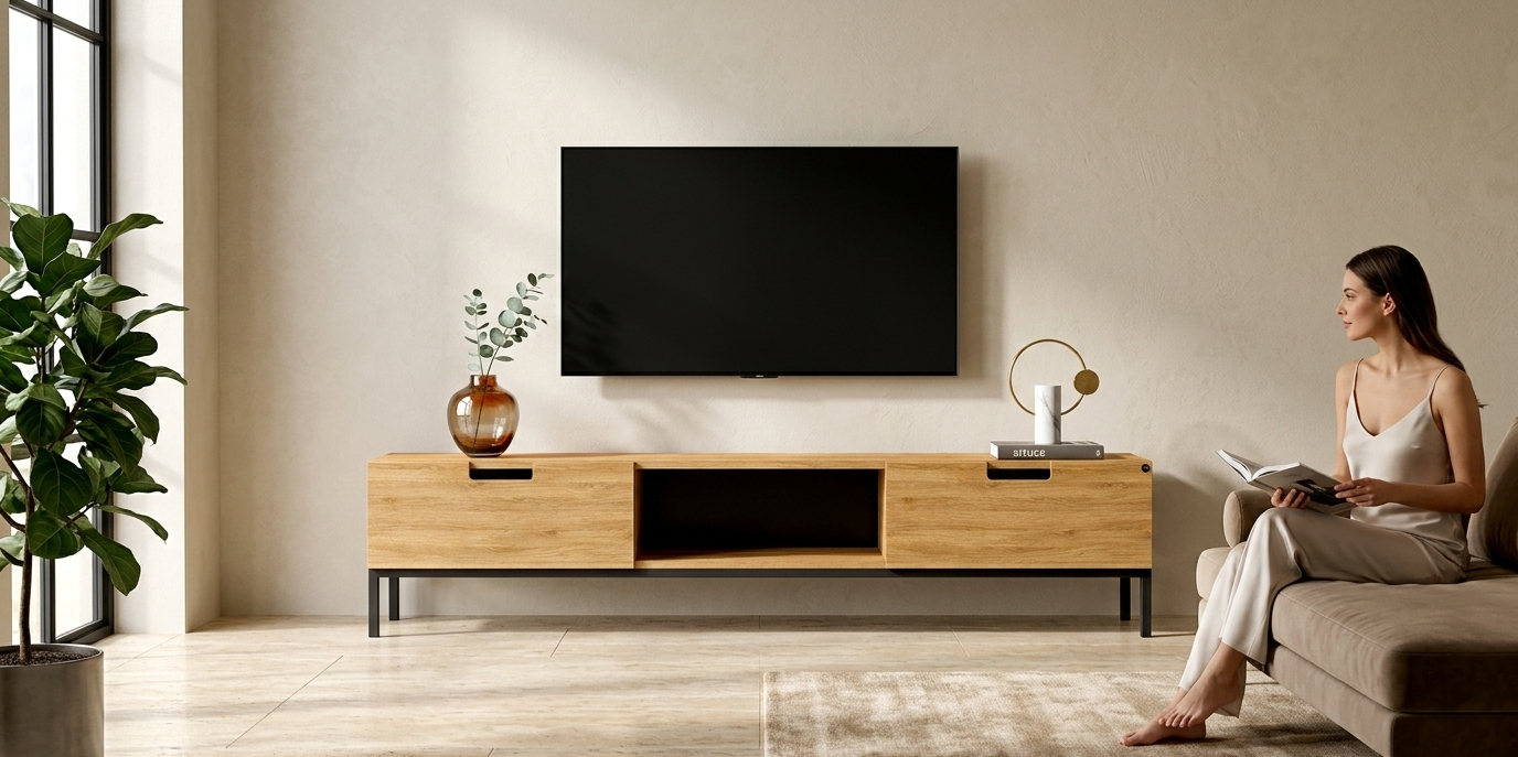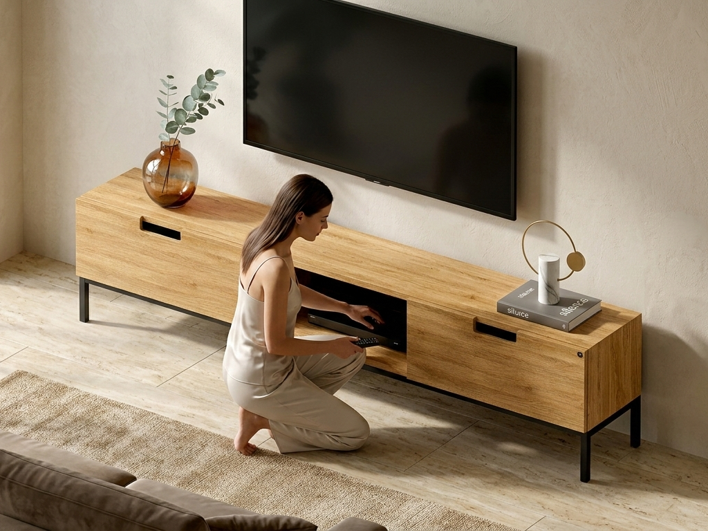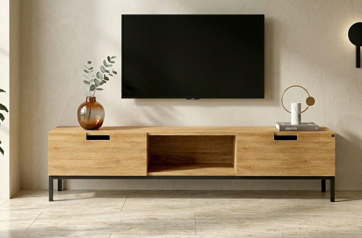 SZAFKA RTV / Gatunek Drewna DĄB LOFT / / Stelaż Naturalny Lakier / noga metalowa czarna / model RTV-46