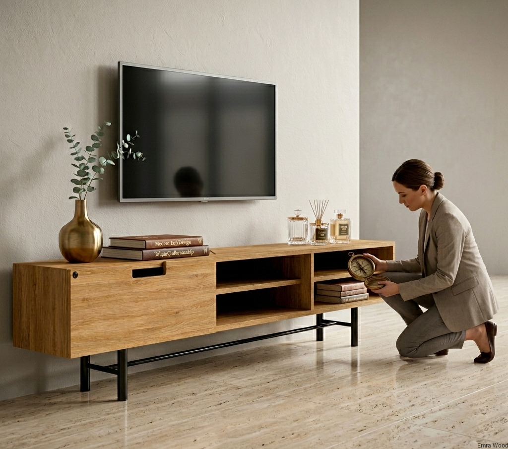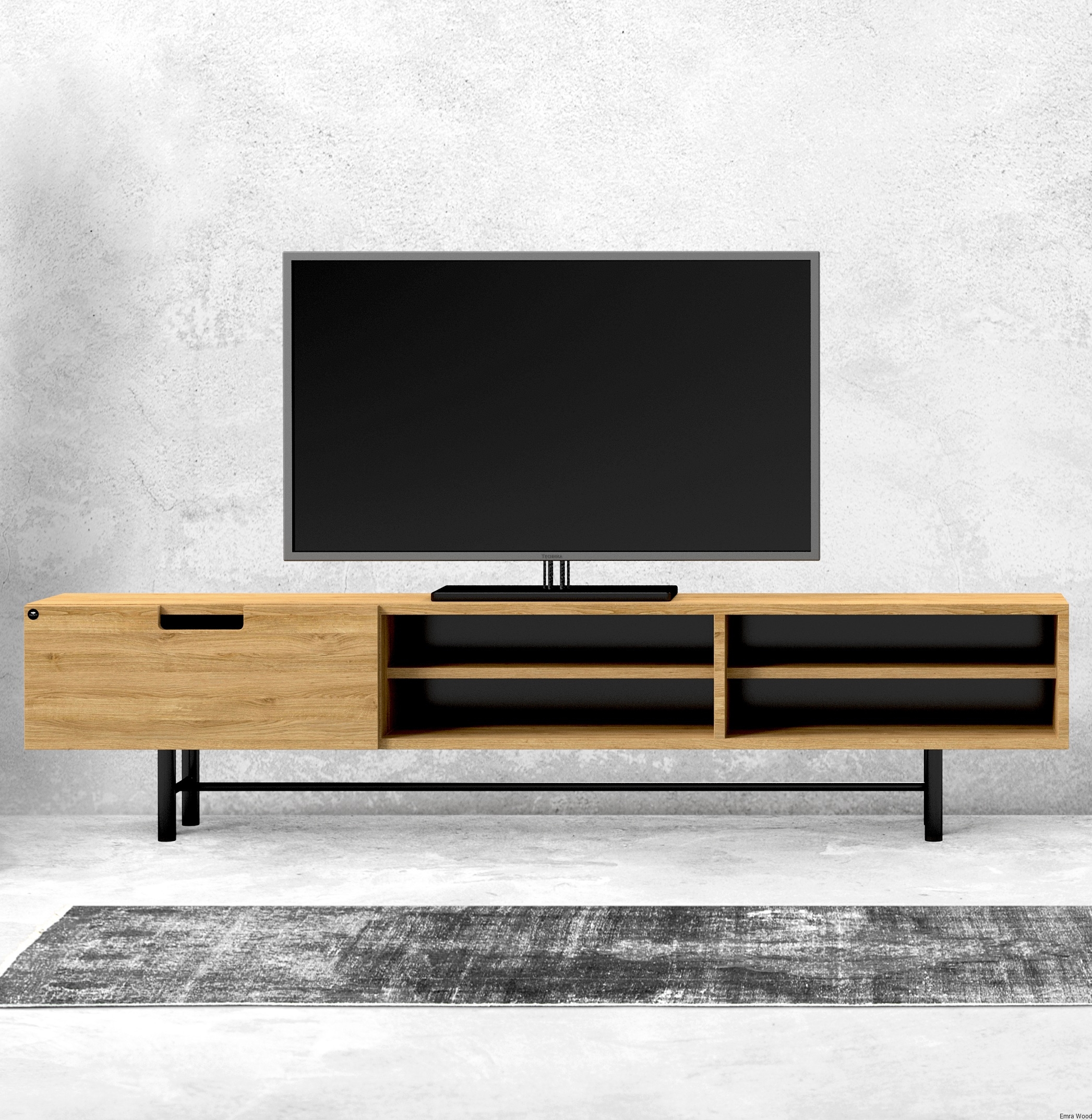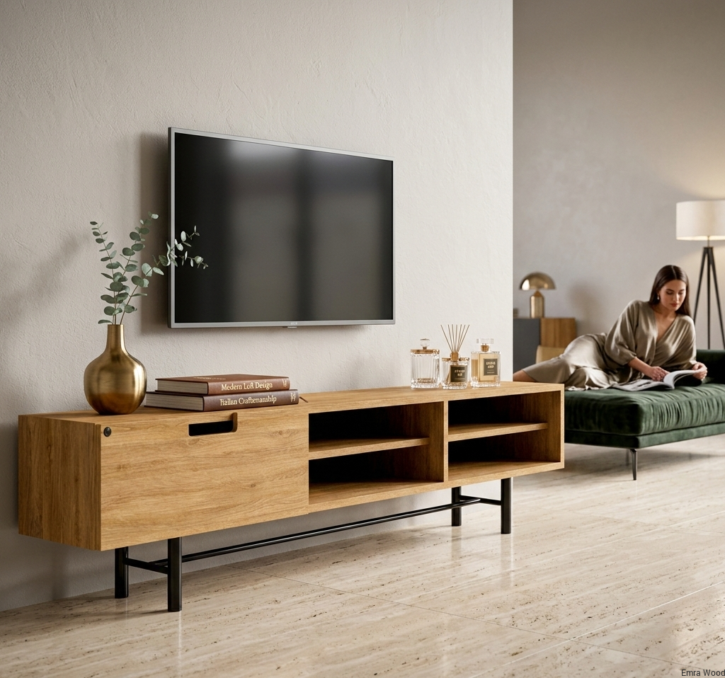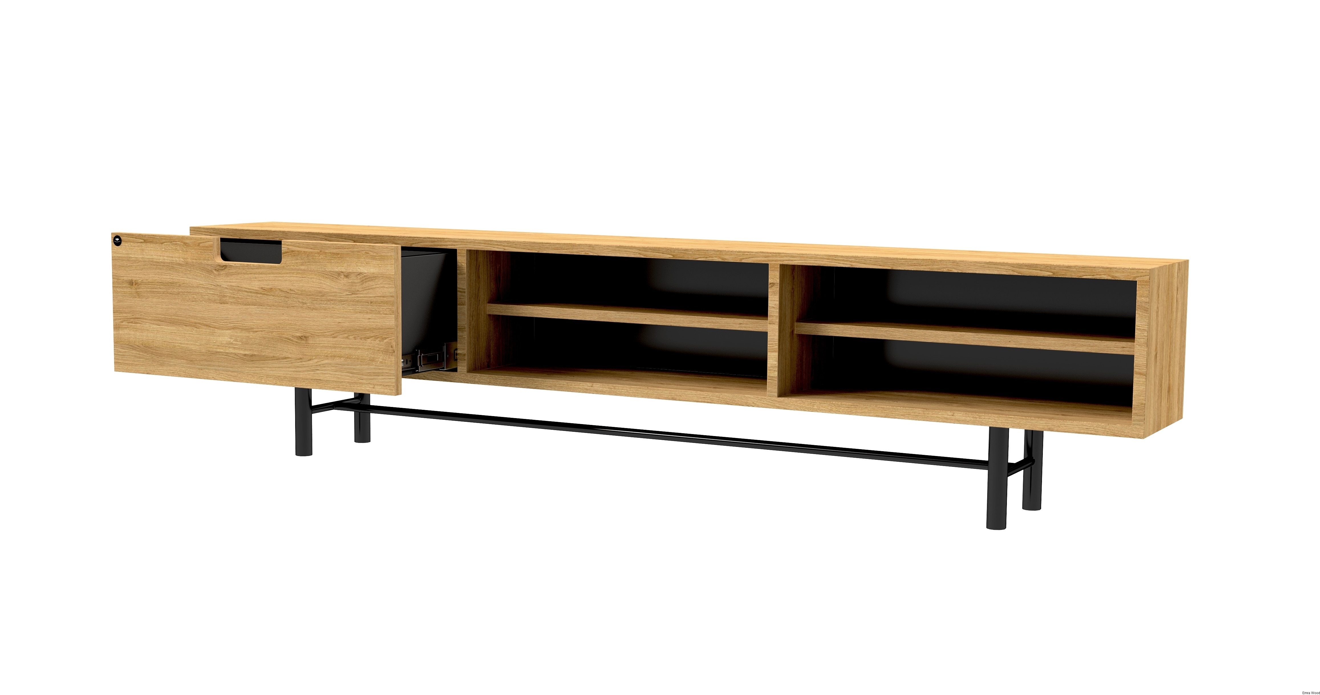 SZAFKA RTV / Gatunek Drewna DĄB LOFT / / Stelaż Naturalny Lakier / noga metalowa czarna / model RTV-57
