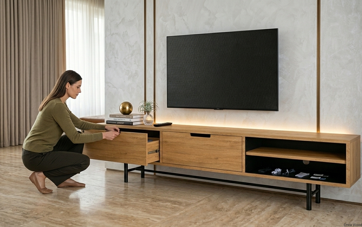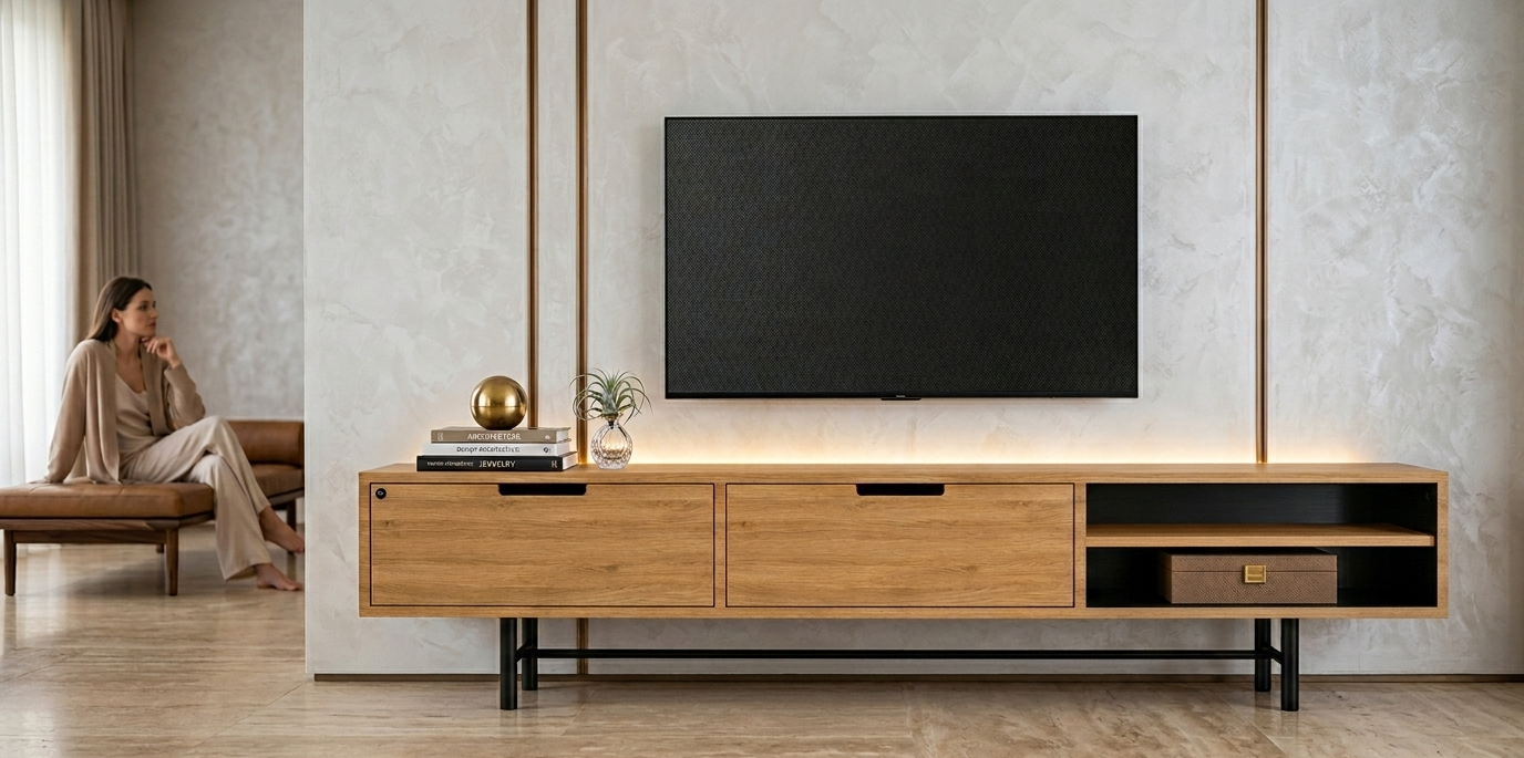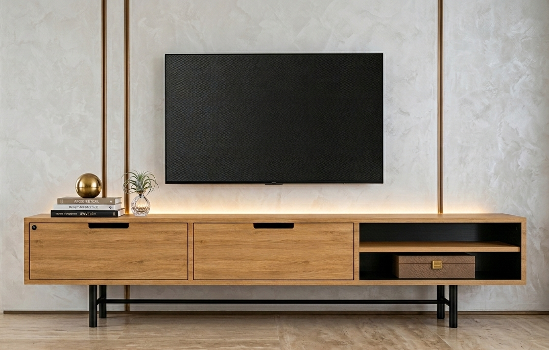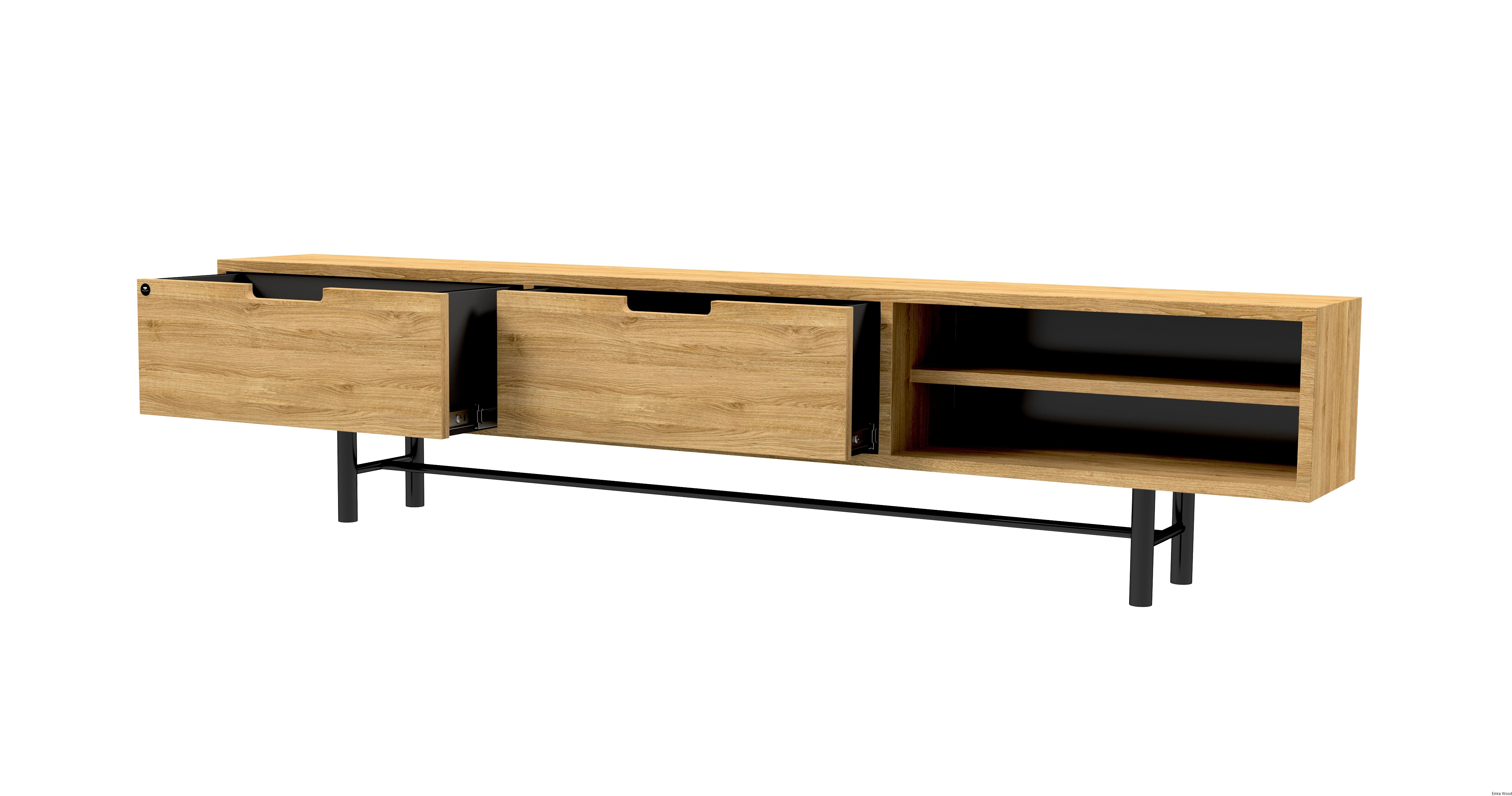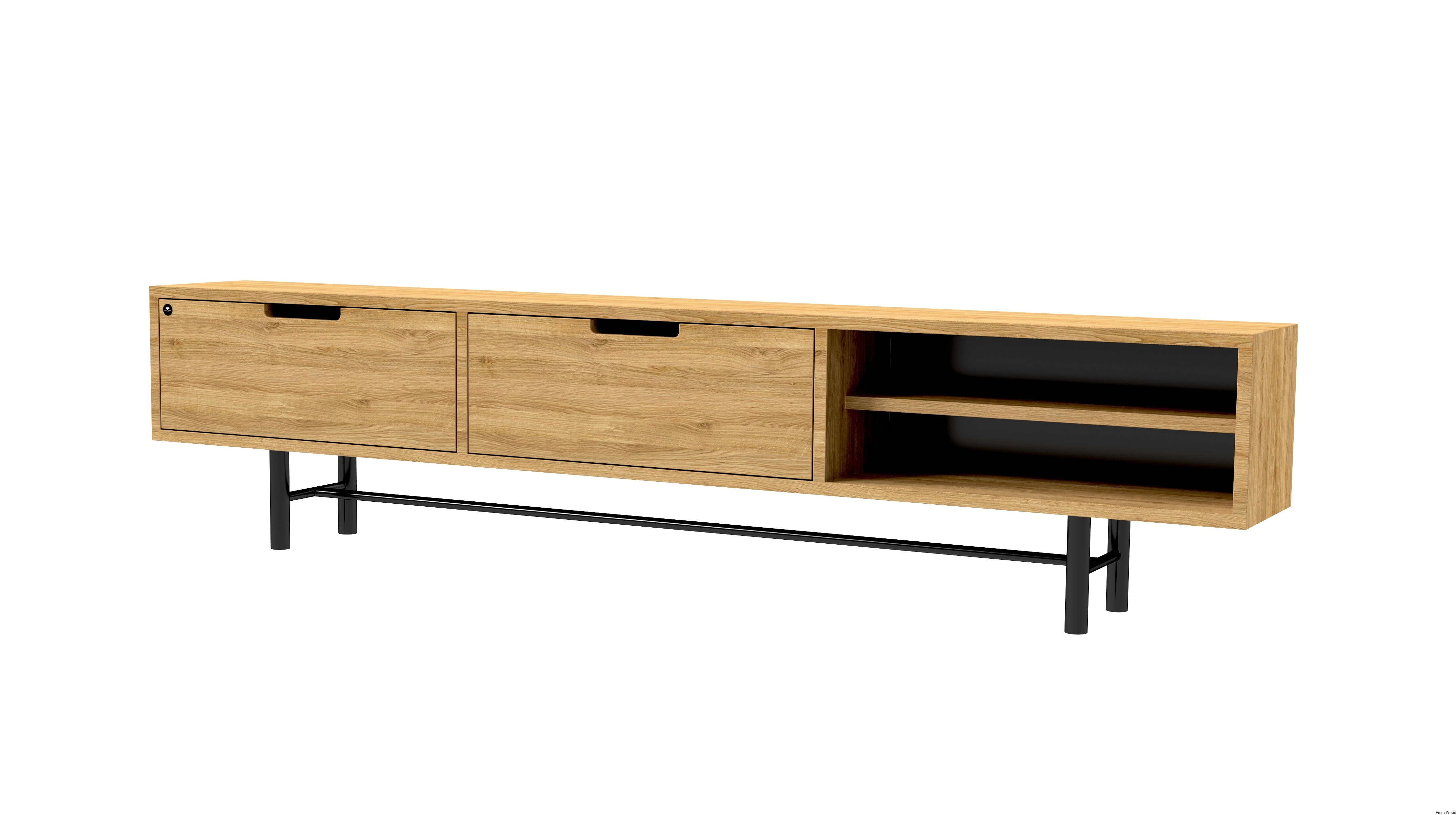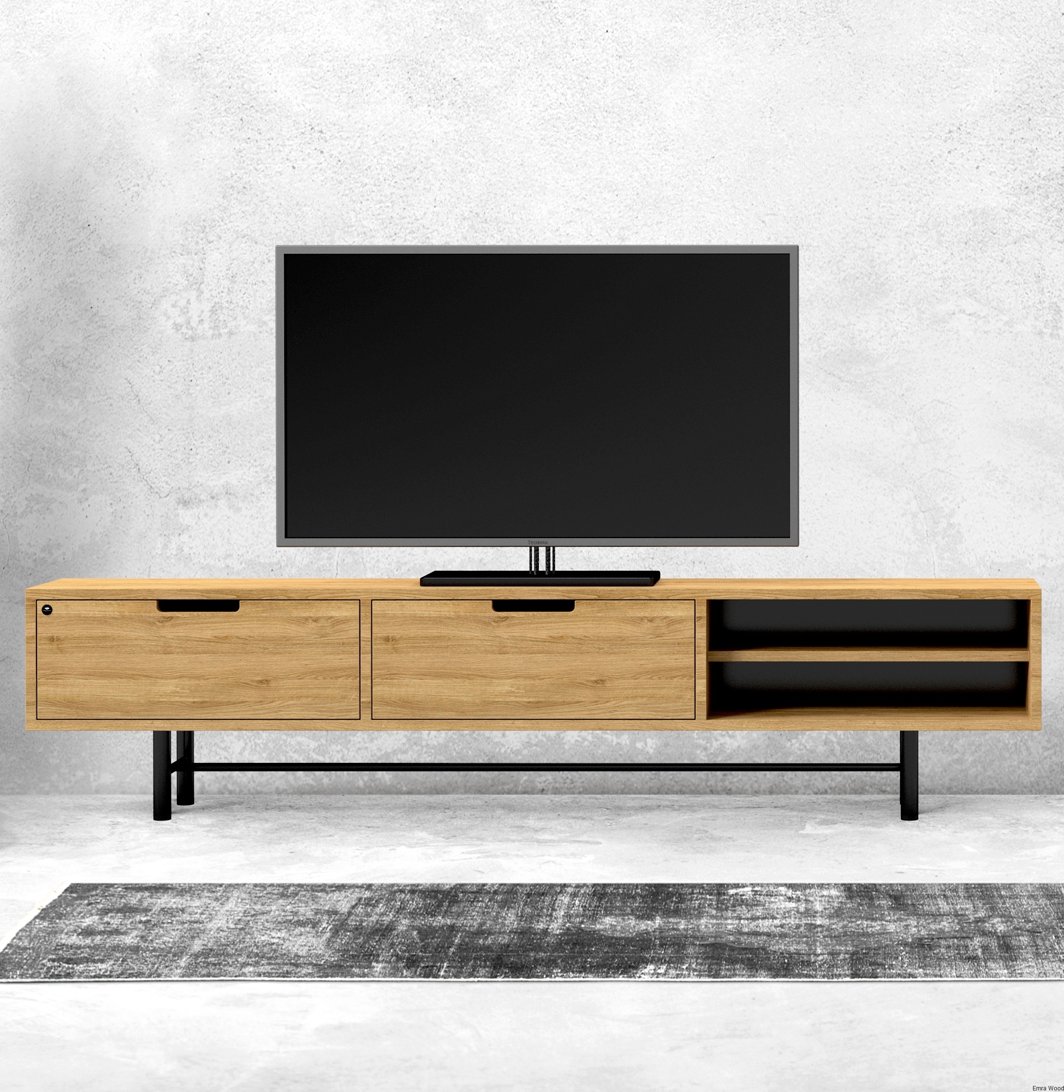 SZAFKA RTV / Gatunek Drewna DĄB LOFT / / Stelaż Naturalny Lakier / noga metalowa czarna / model RTV-59