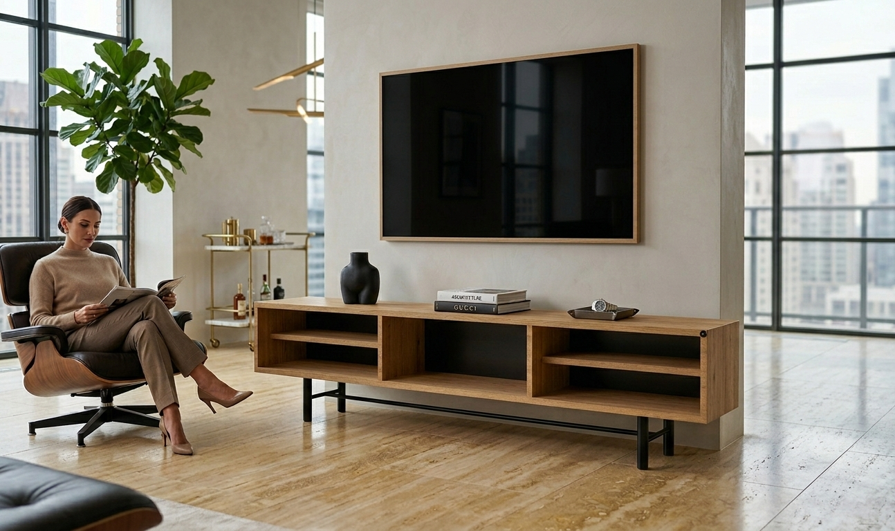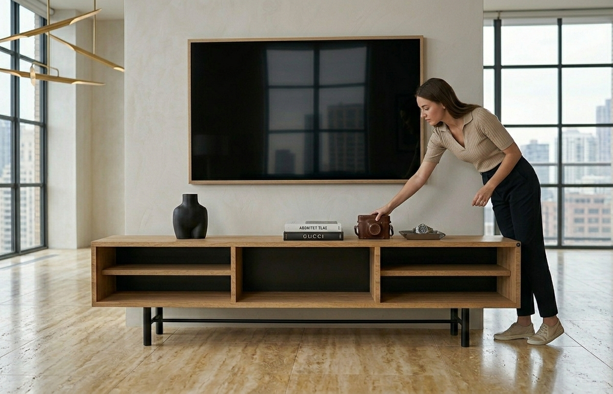SZAFKA RTV / Gatunek Drewna DĄB LOFT / / Stelaż Naturalny Lakier / noga metalowa czarna / model RTV-61