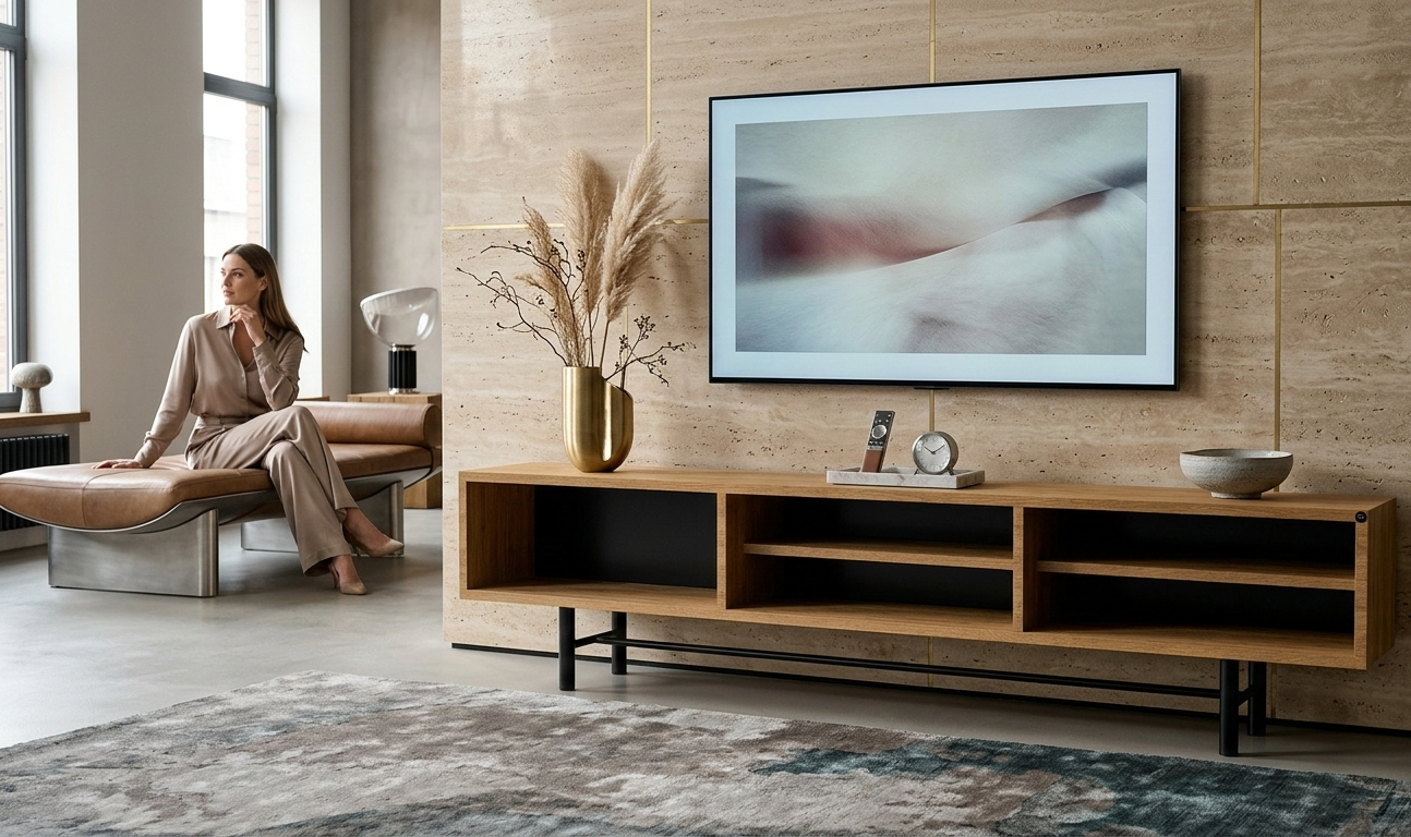 SZAFKA RTV / Gatunek Drewna DĄB LOFT / / Stelaż Naturalny Lakier / noga metalowa czarna / model RTV-62