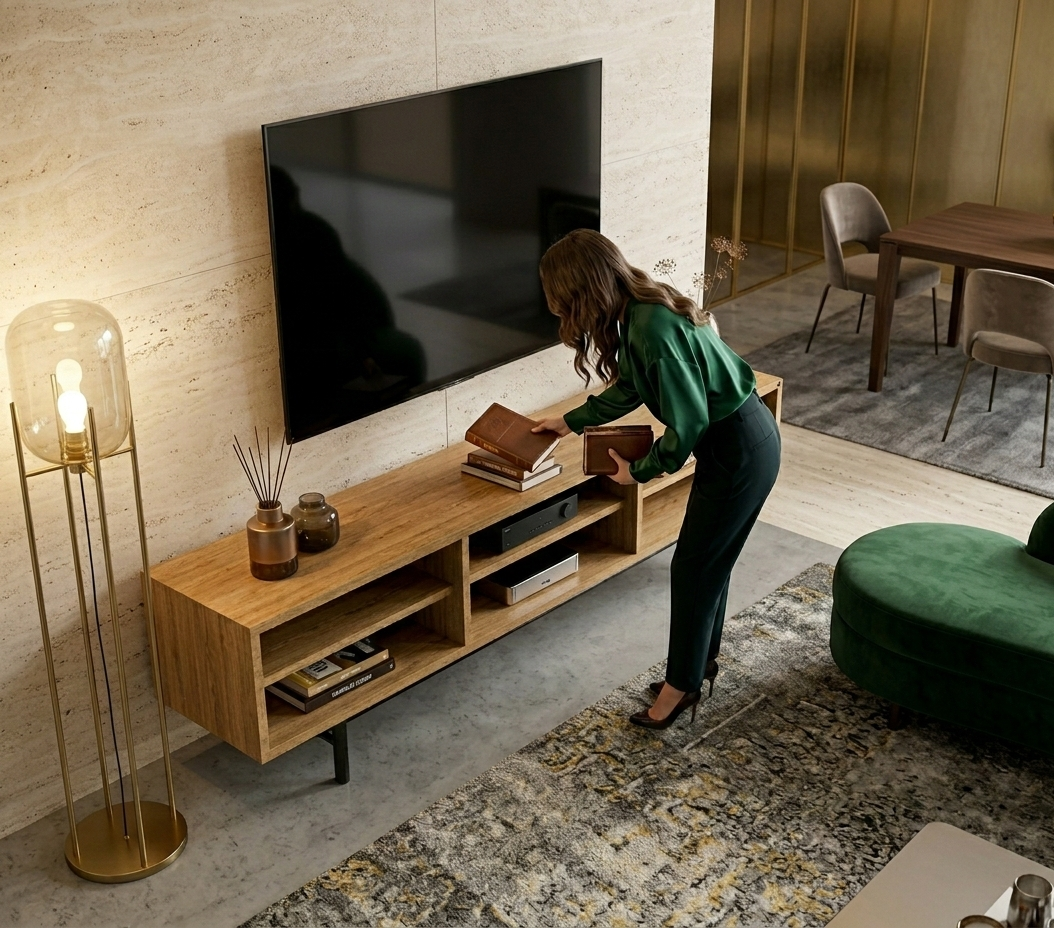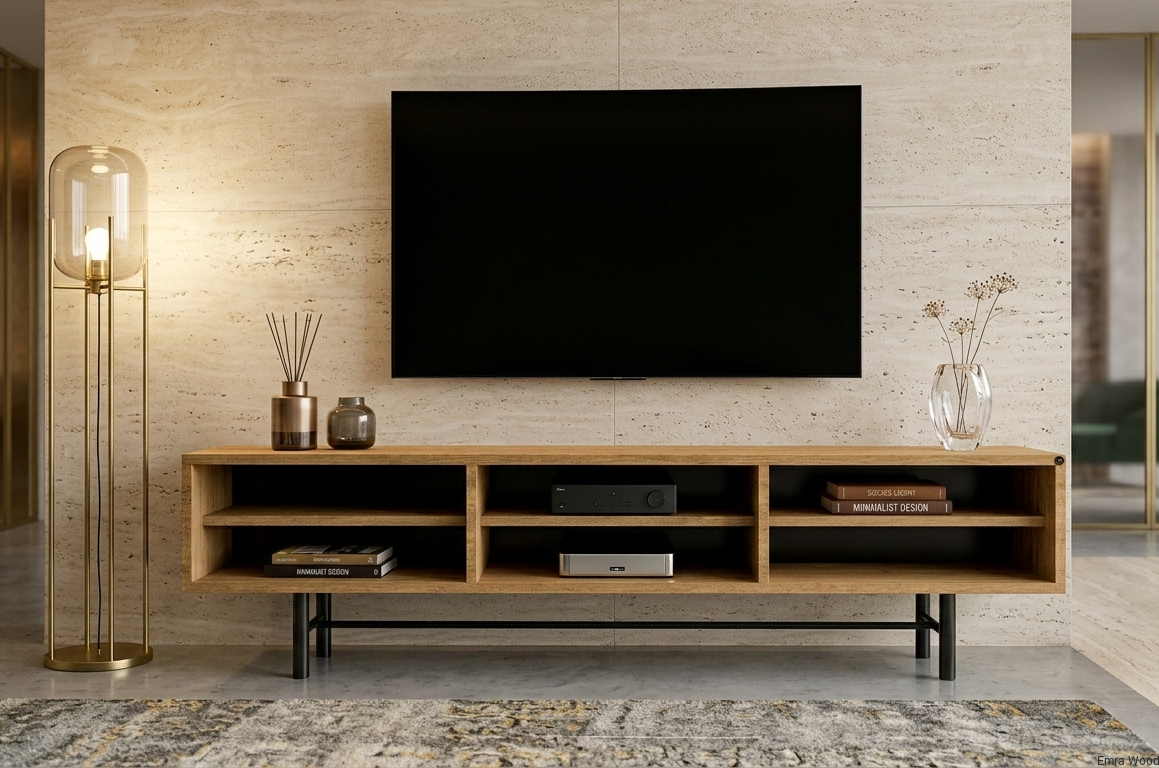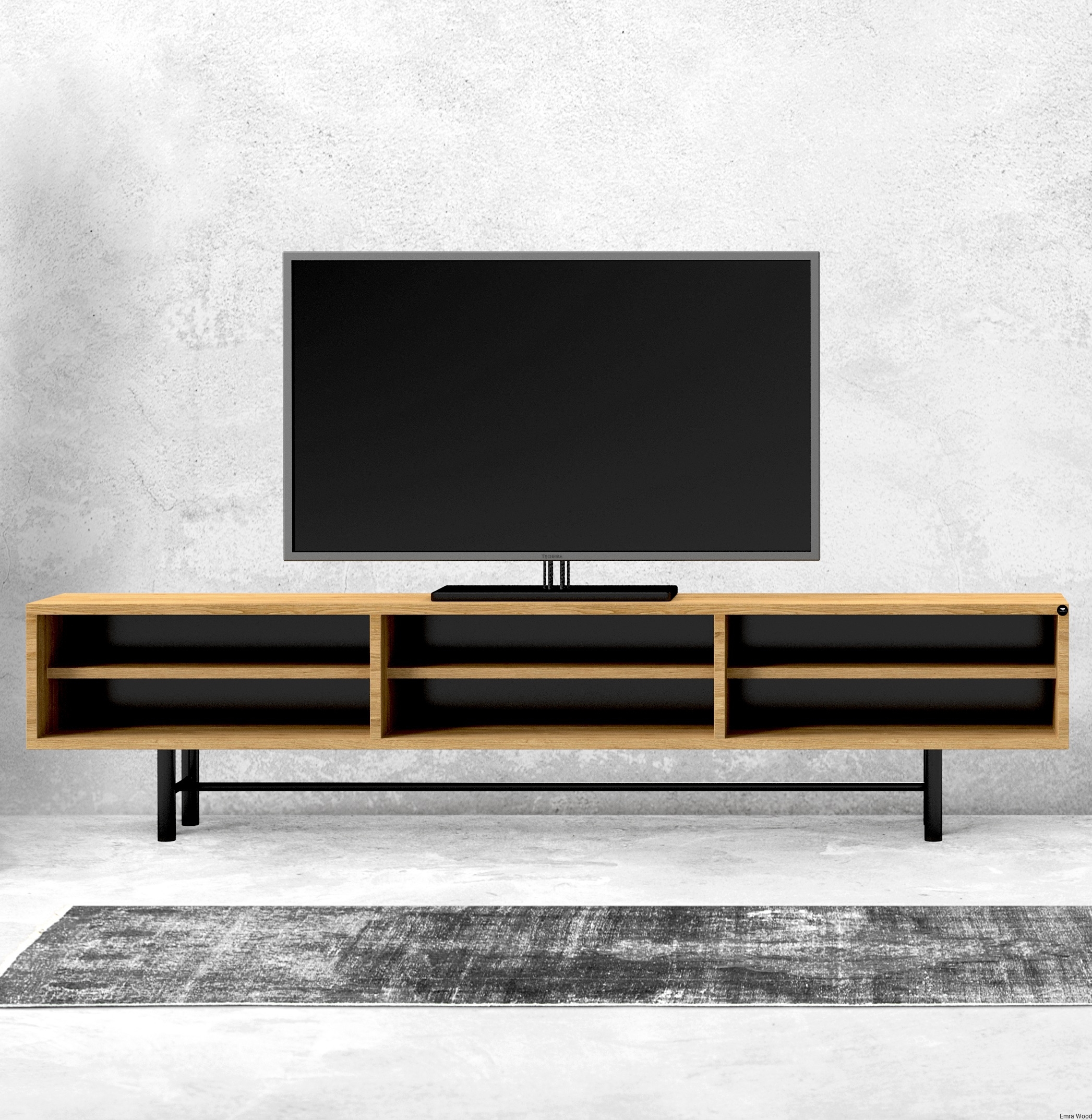 SZAFKA RTV / Gatunek Drewna DĄB LOFT / / Stelaż Naturalny Lakier / noga metalowa czarna / model RTV-64