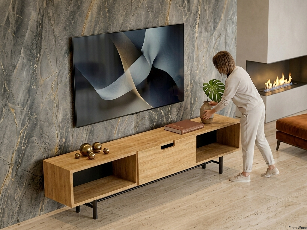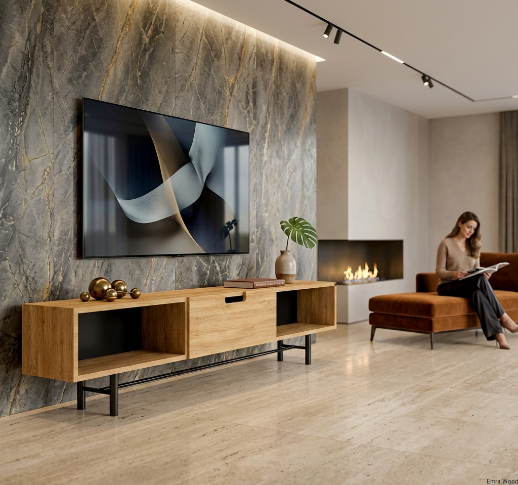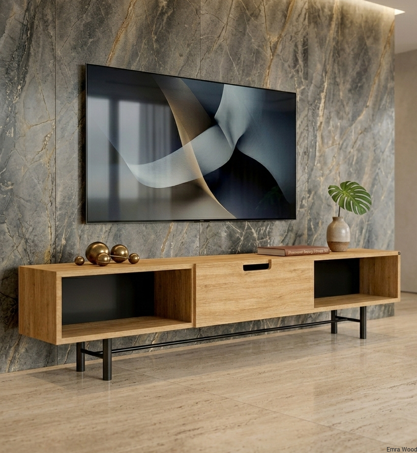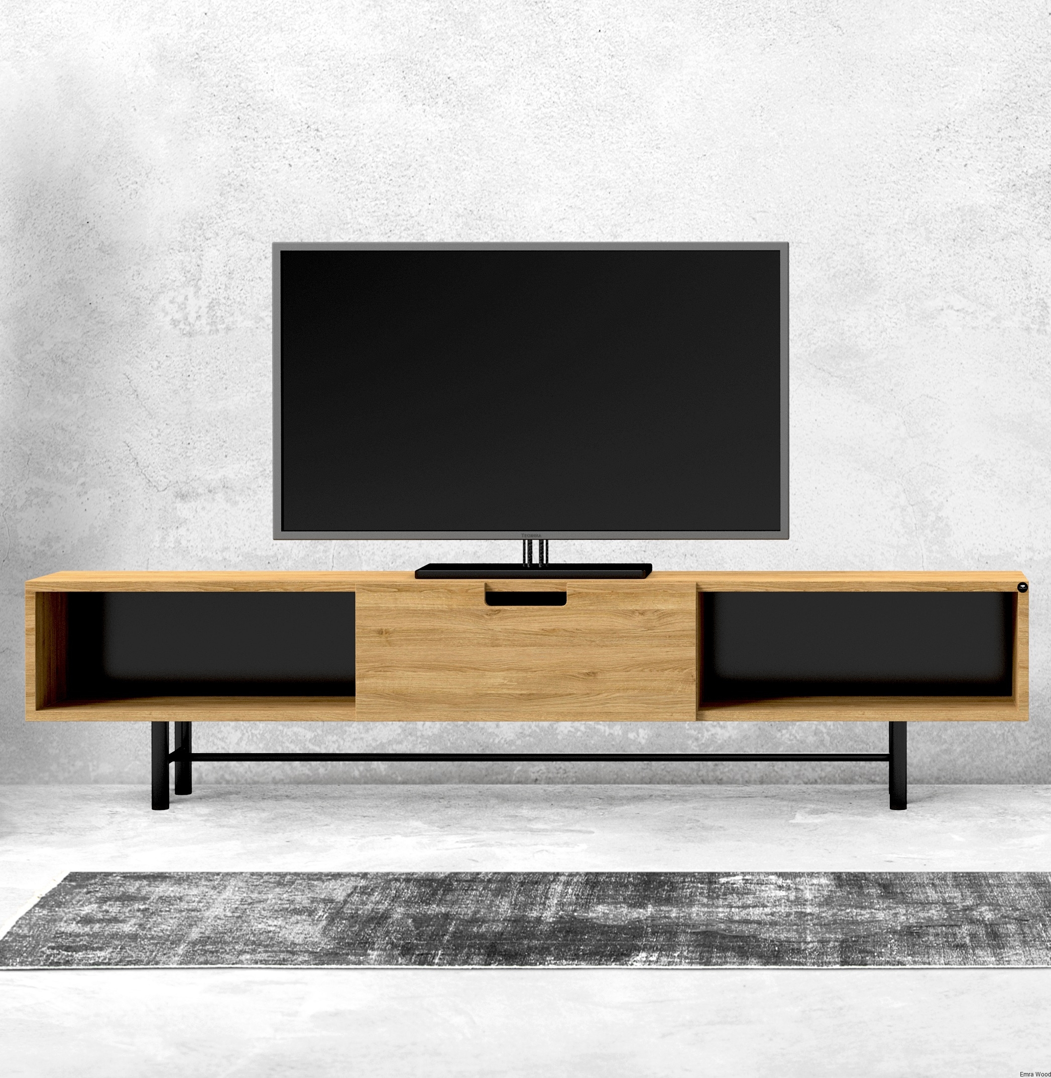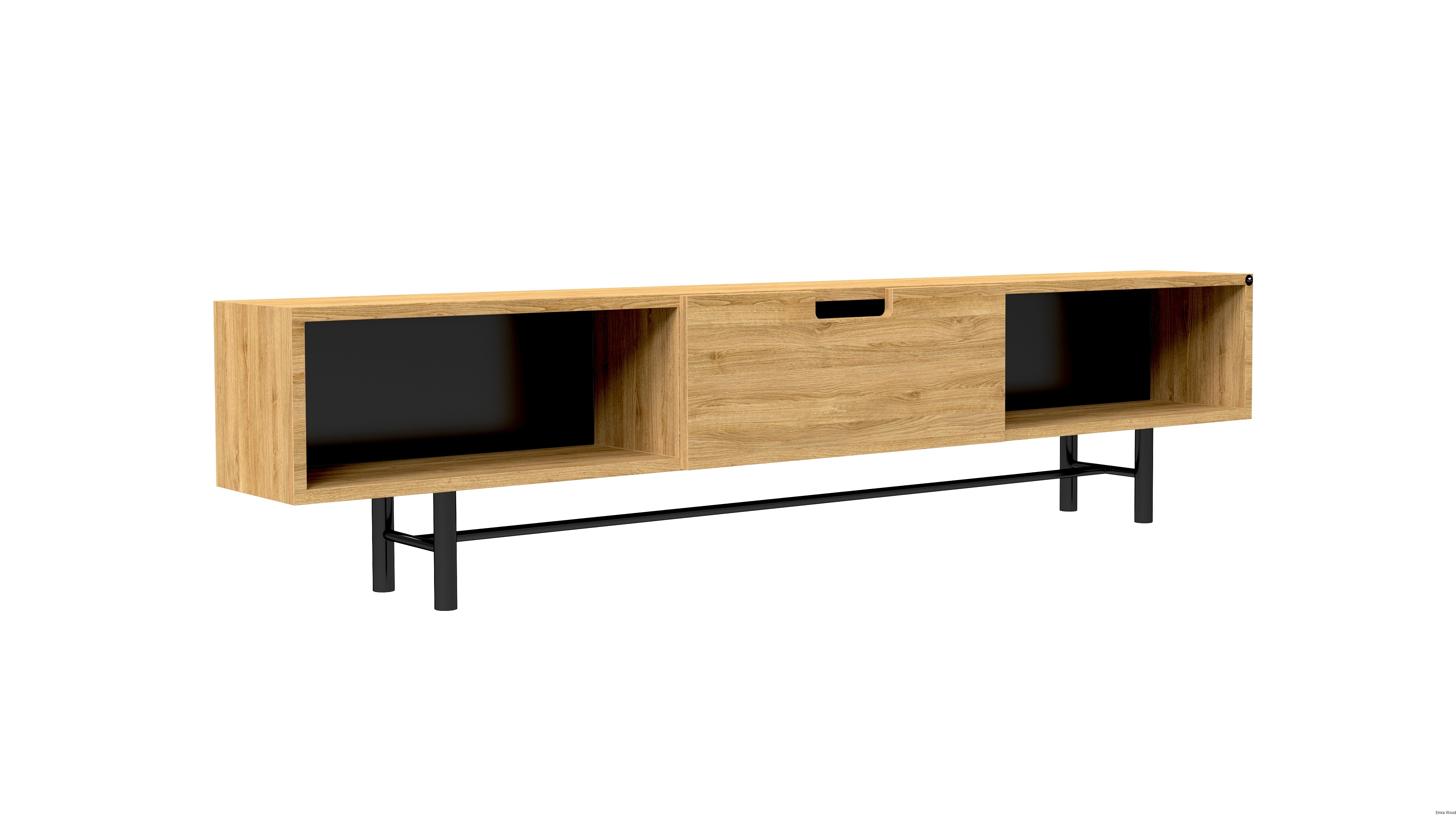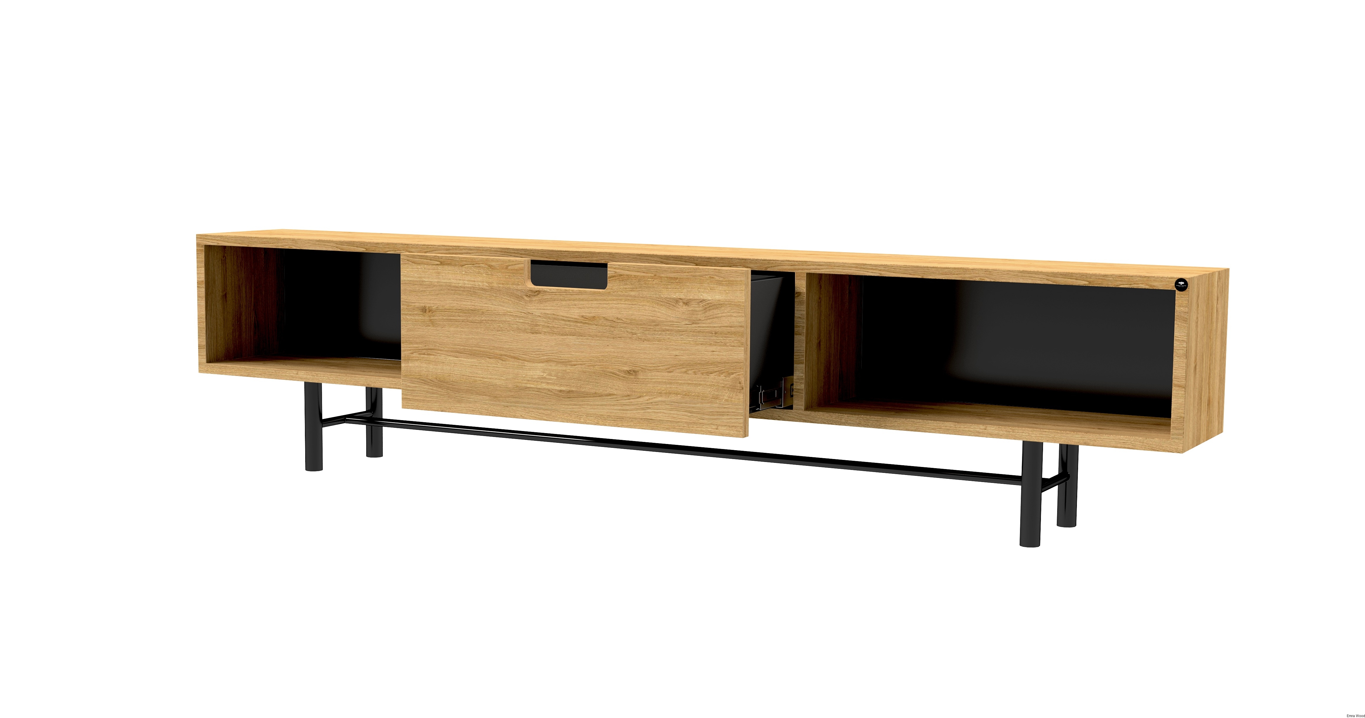 SZAFKA RTV / Gatunek Drewna DĄB LOFT / / Stelaż Naturalny Lakier / noga metalowa czarna / model RTV-70