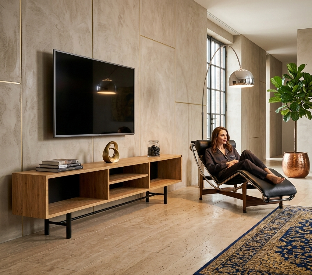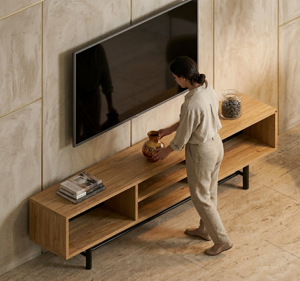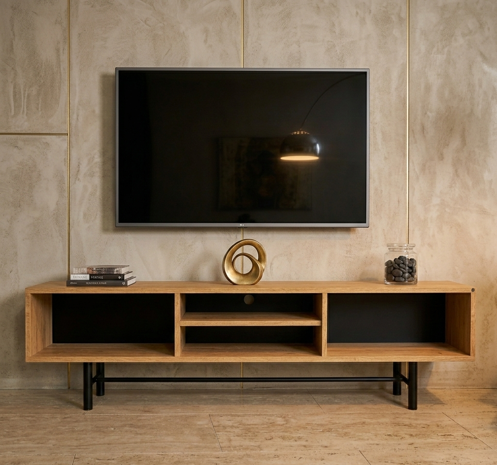 SZAFKA RTV / Gatunek Drewna DĄB LOFT / / Stelaż Naturalny Lakier / noga metalowa czarna / model RTV-71