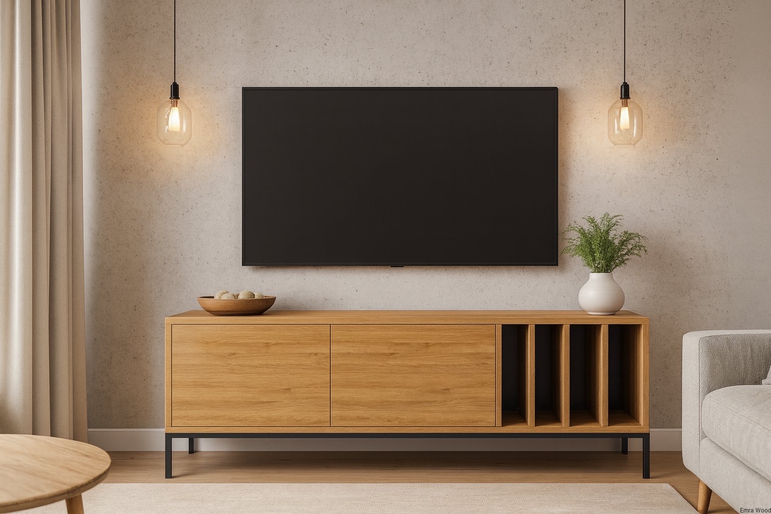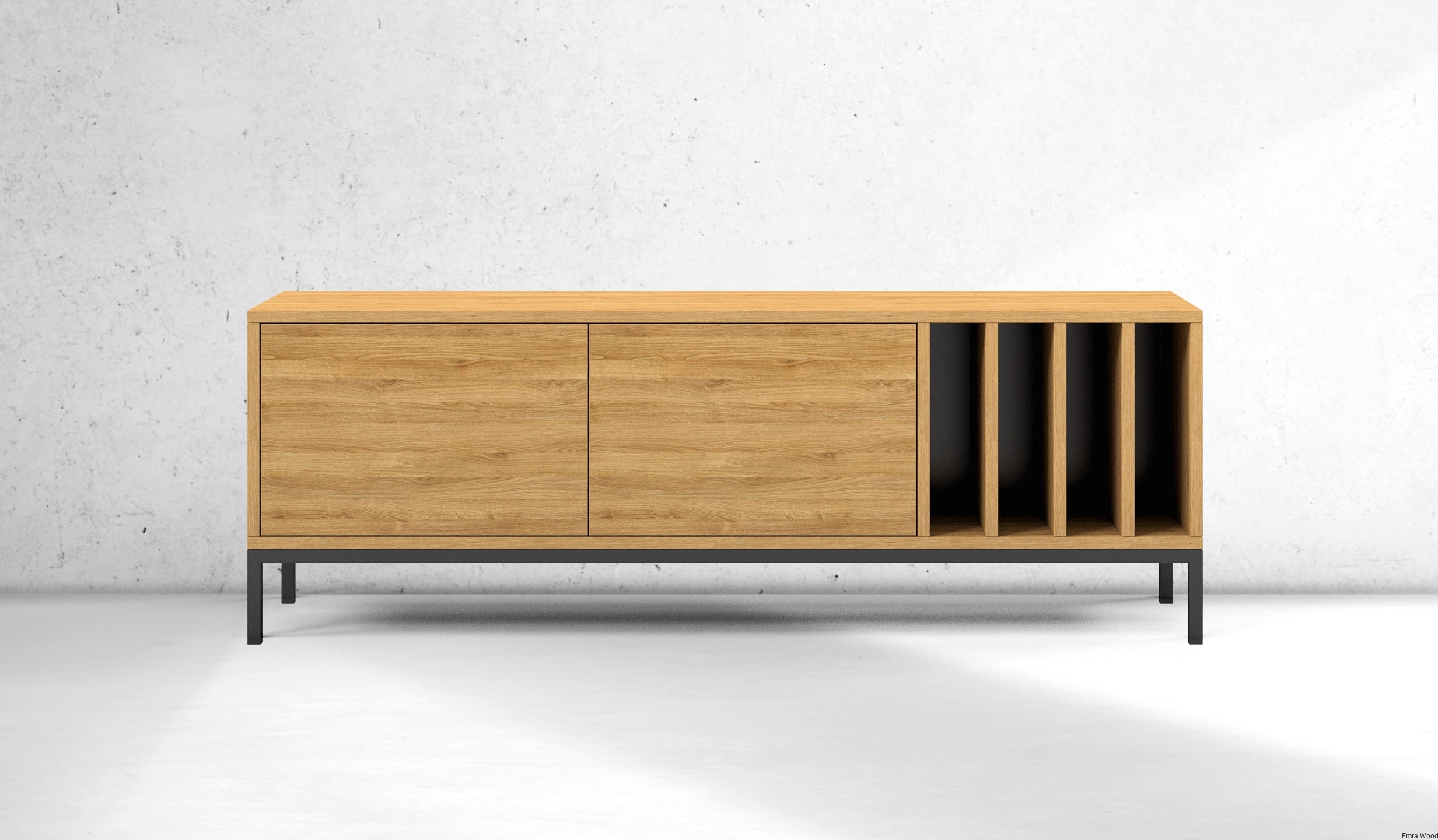 SZAFKA RTV / Gatunek Drewna DĄB LOFT / / Stelaż Naturalny Lakier / noga metalowa czarna / model RTV-73