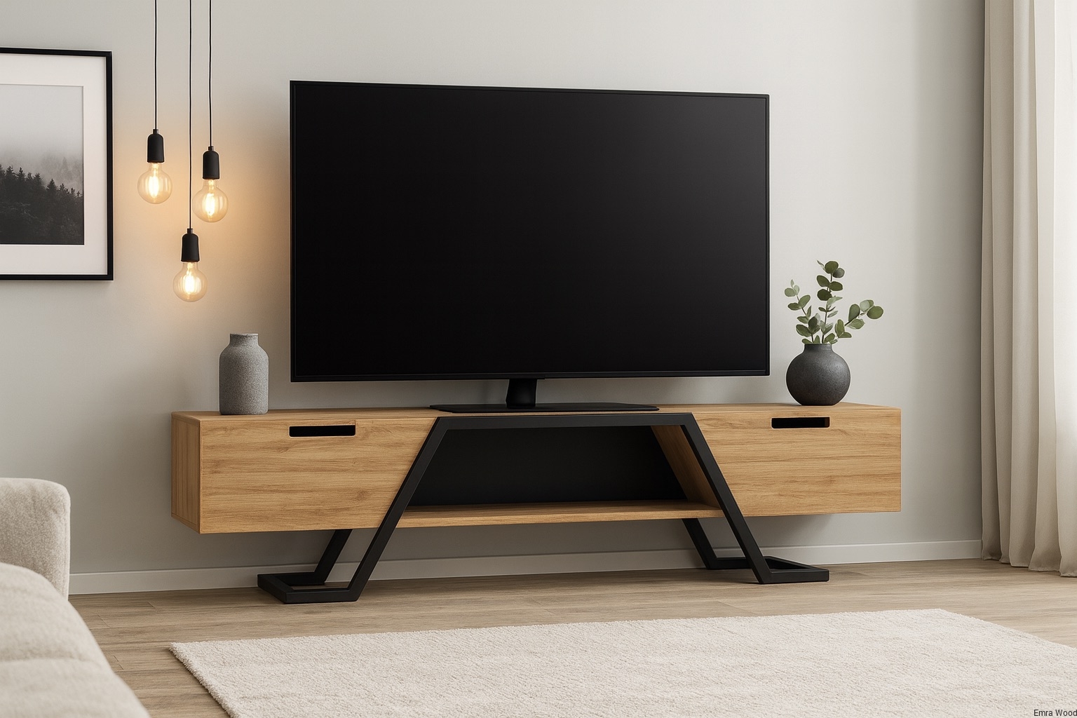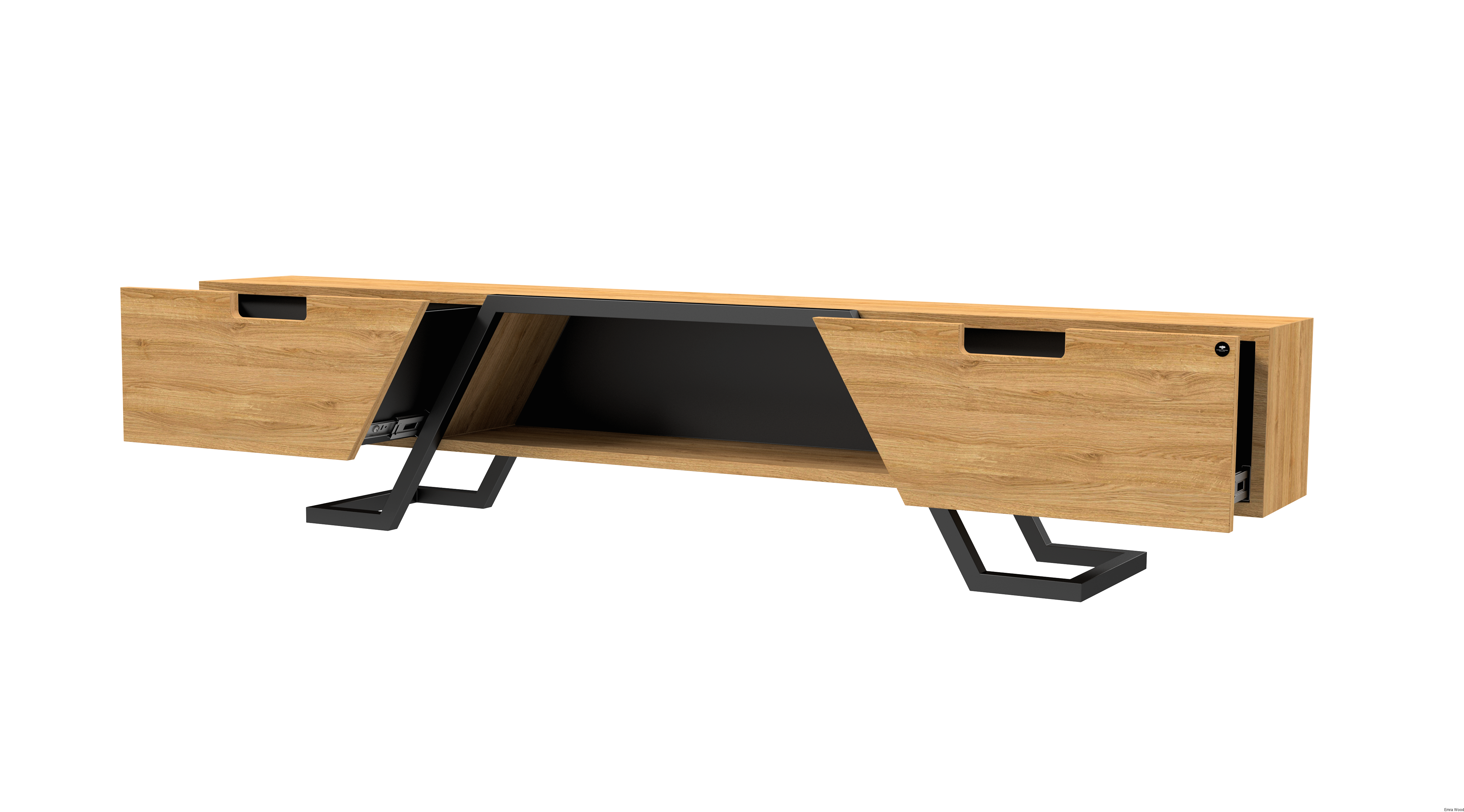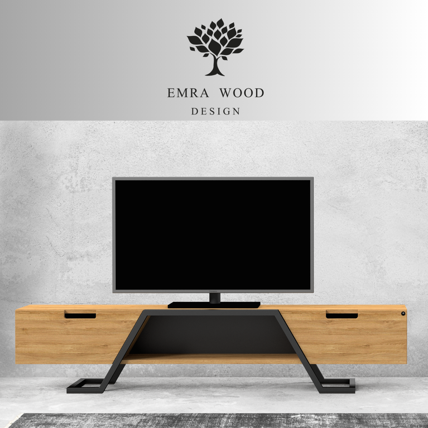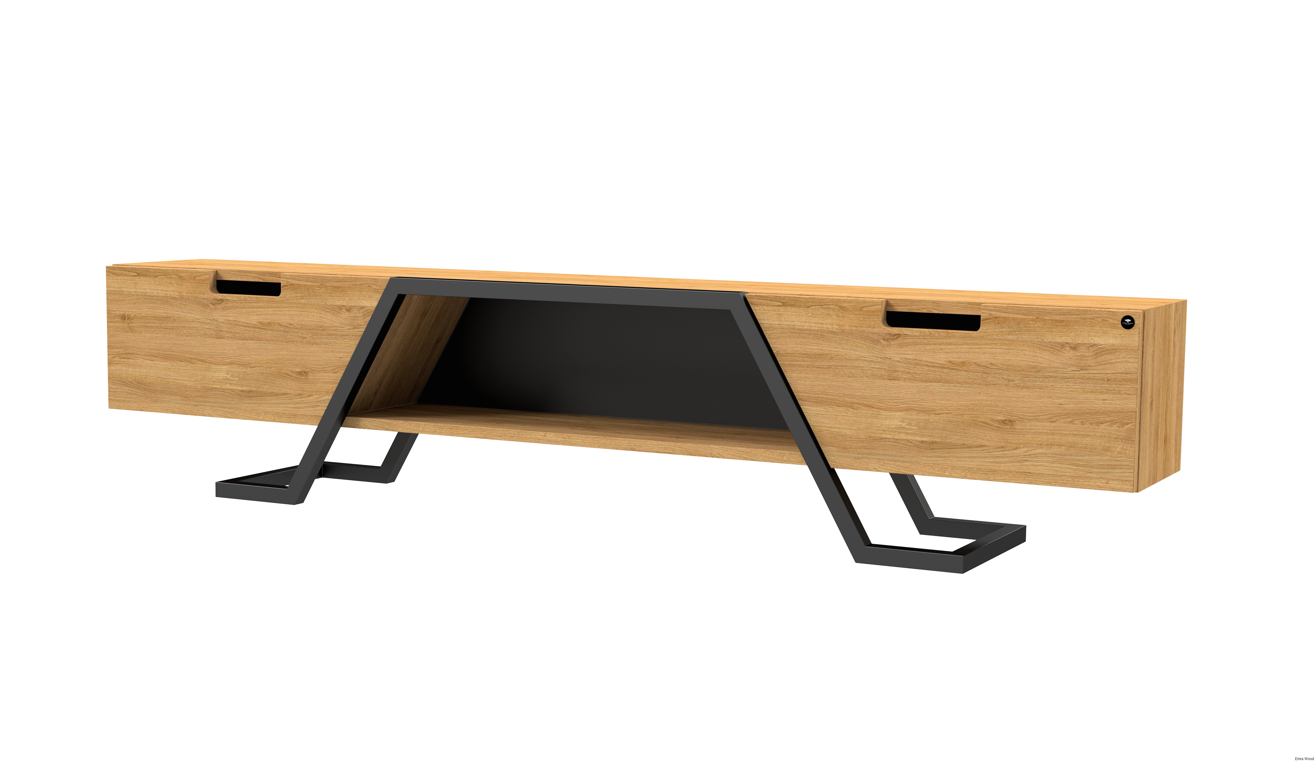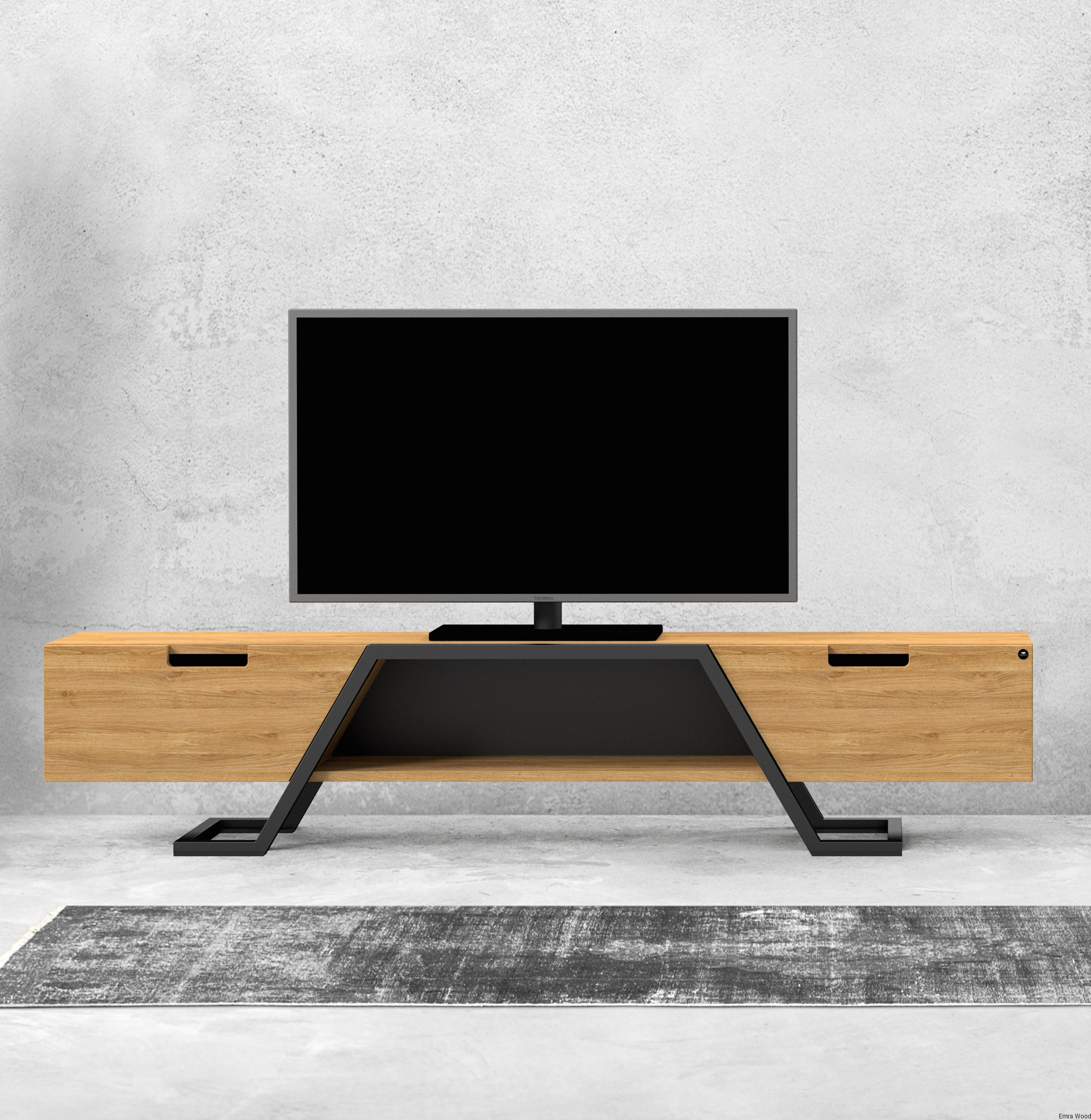 SZAFKA RTV / Gatunek Drewna DĄB LOFT / / Stelaż Naturalny Lakier / noga metalowa czarna / model RTV-74