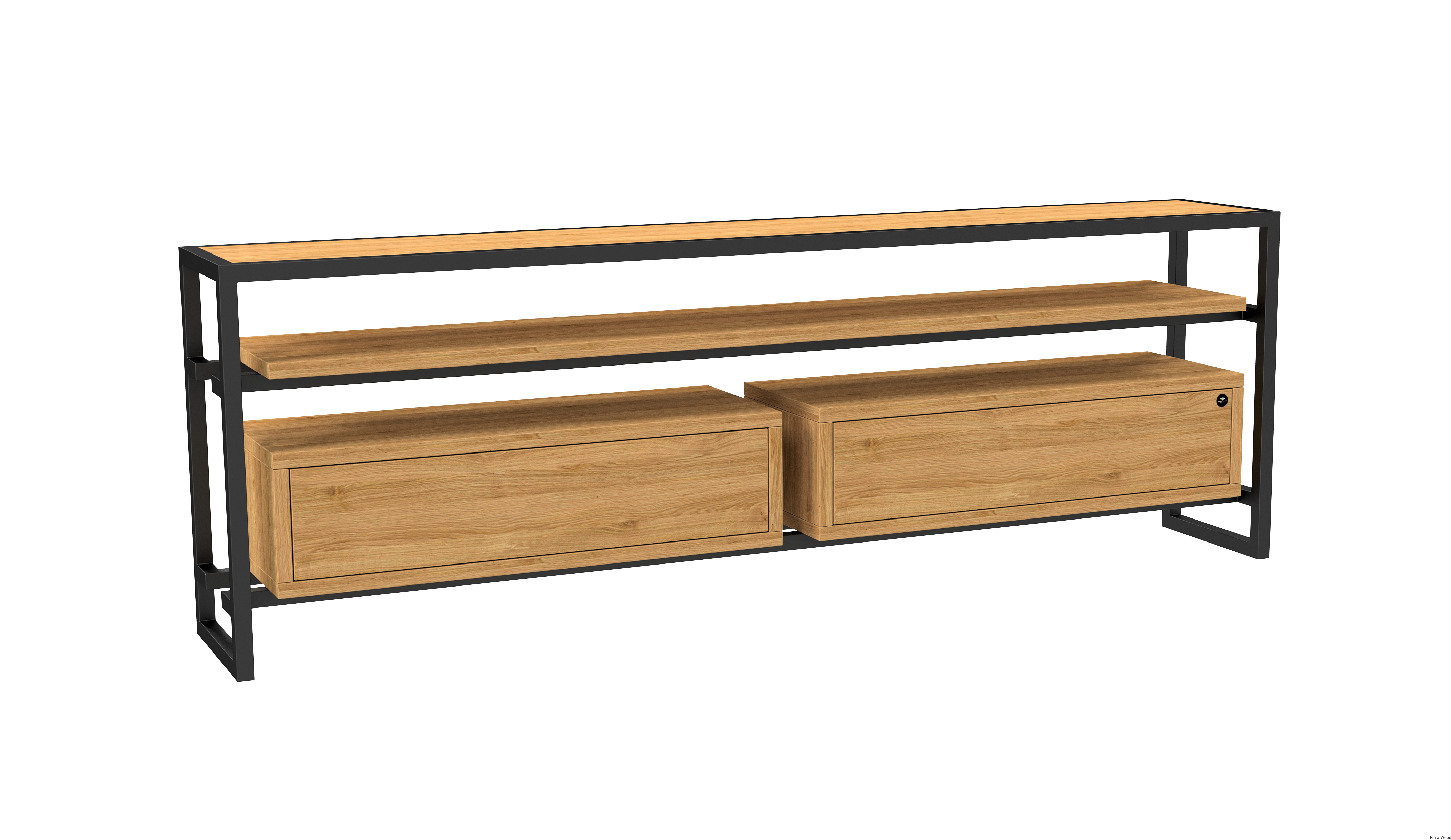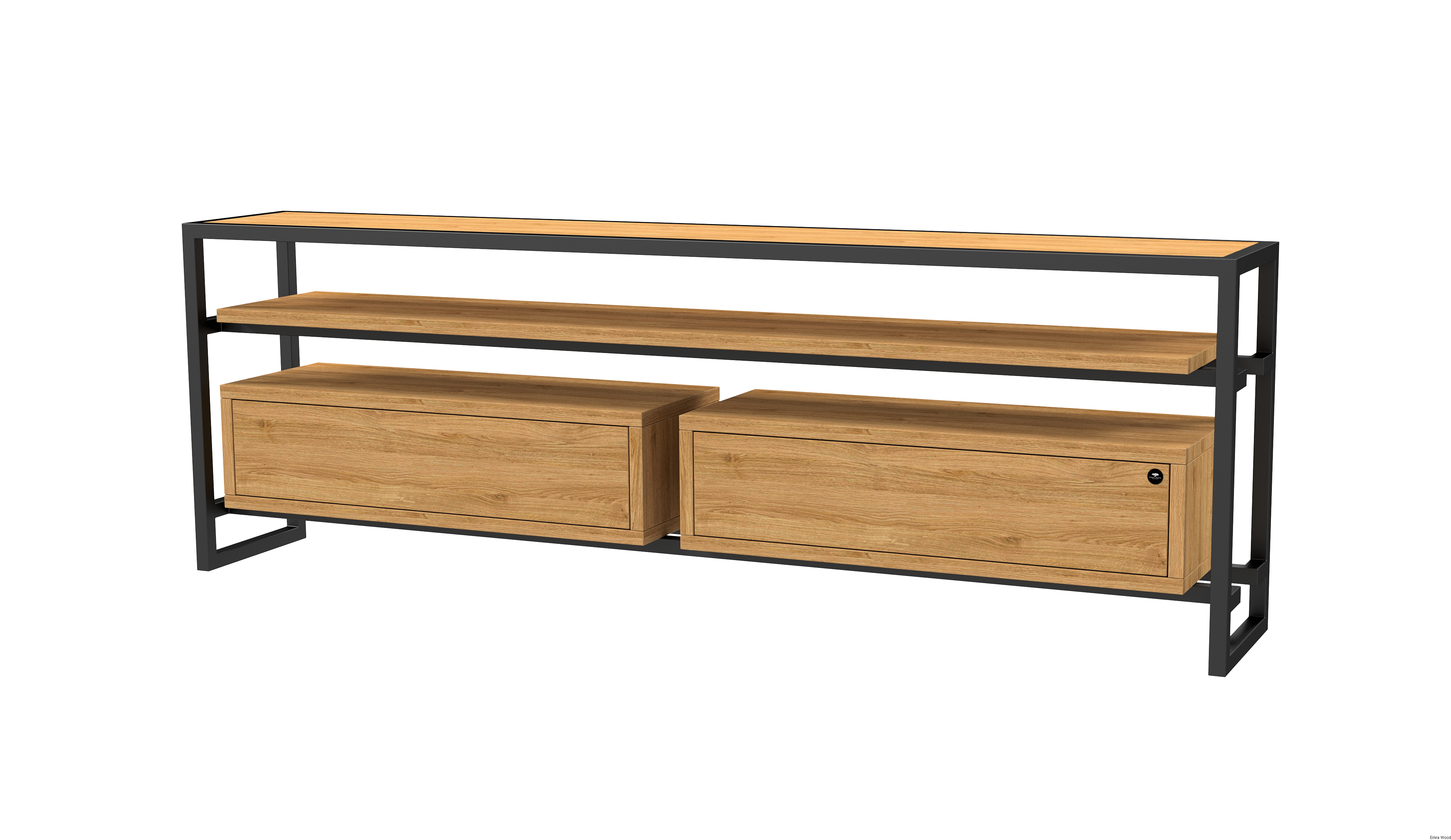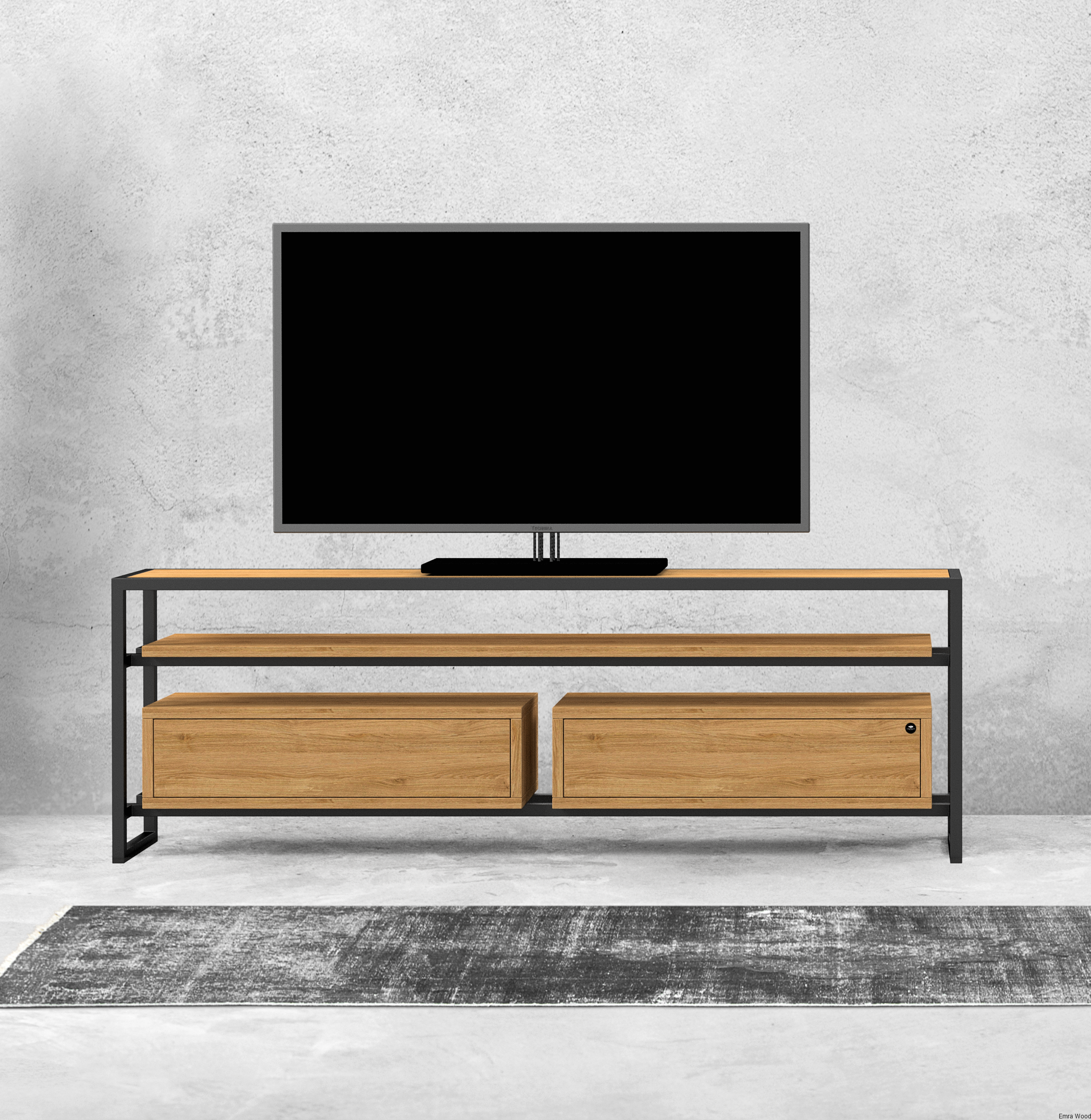 SZAFKA RTV / Gatunek Drewna DĄB LOFT / / Stelaż Naturalny Lakier / noga metalowa czarna / model RTV-77