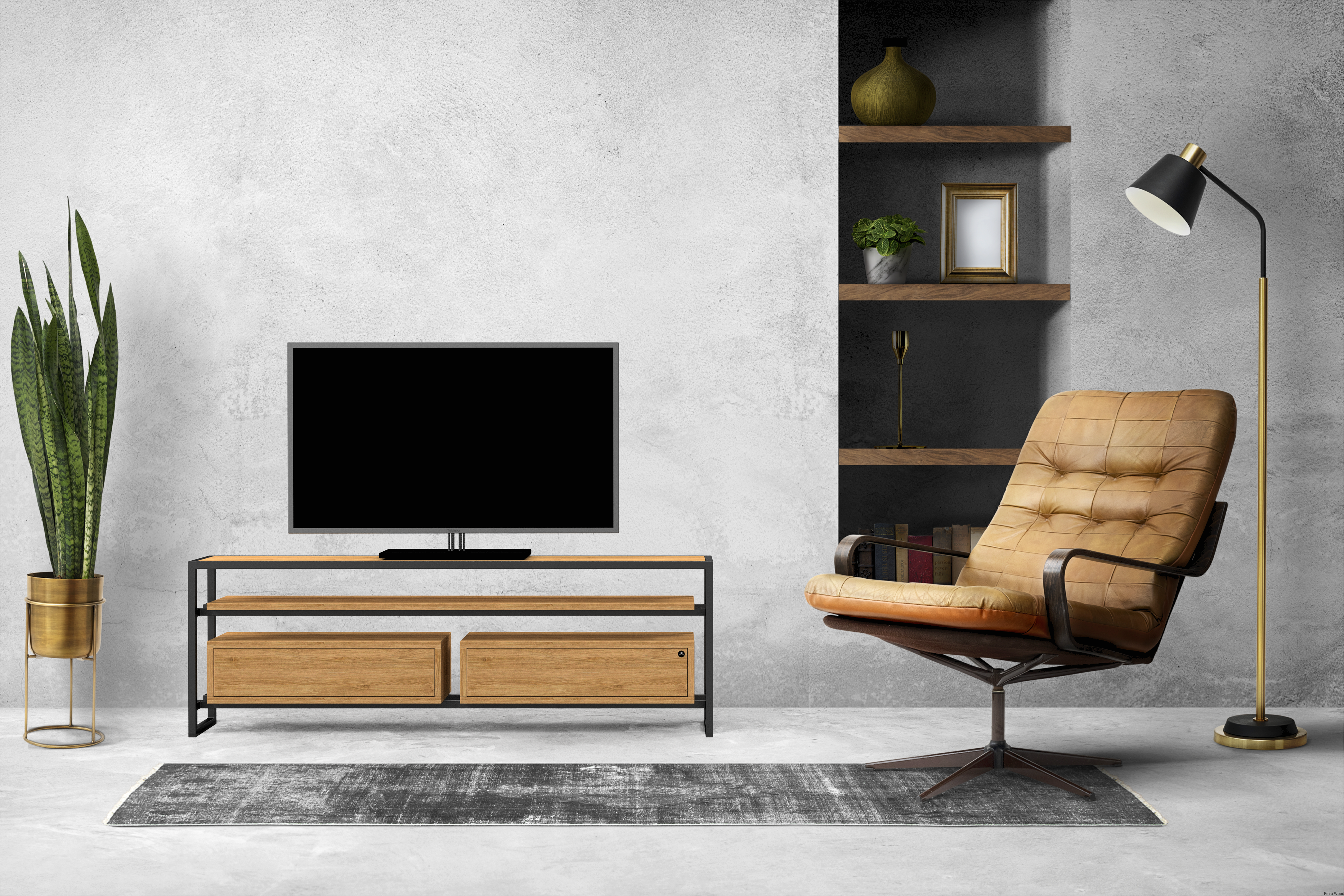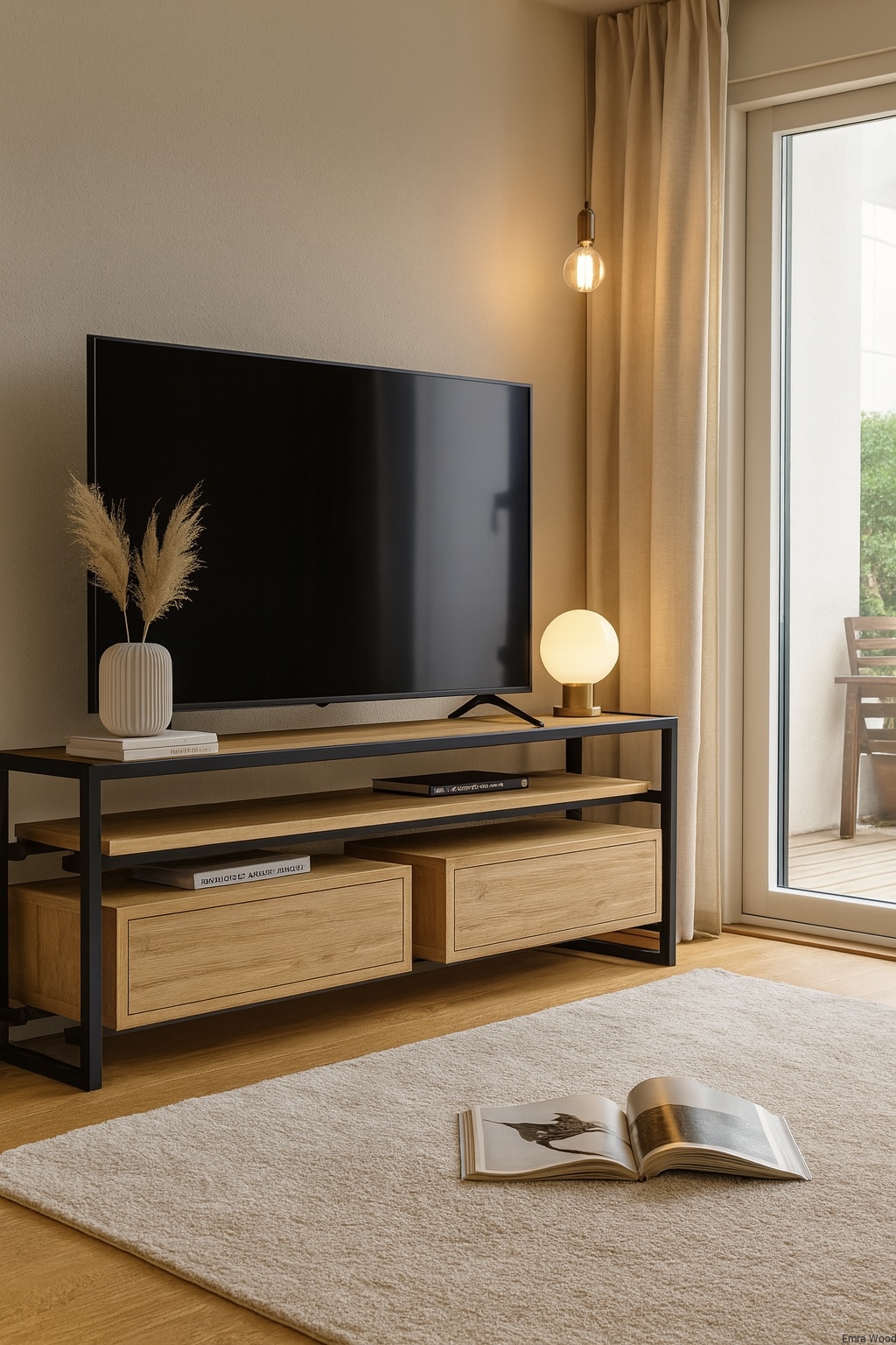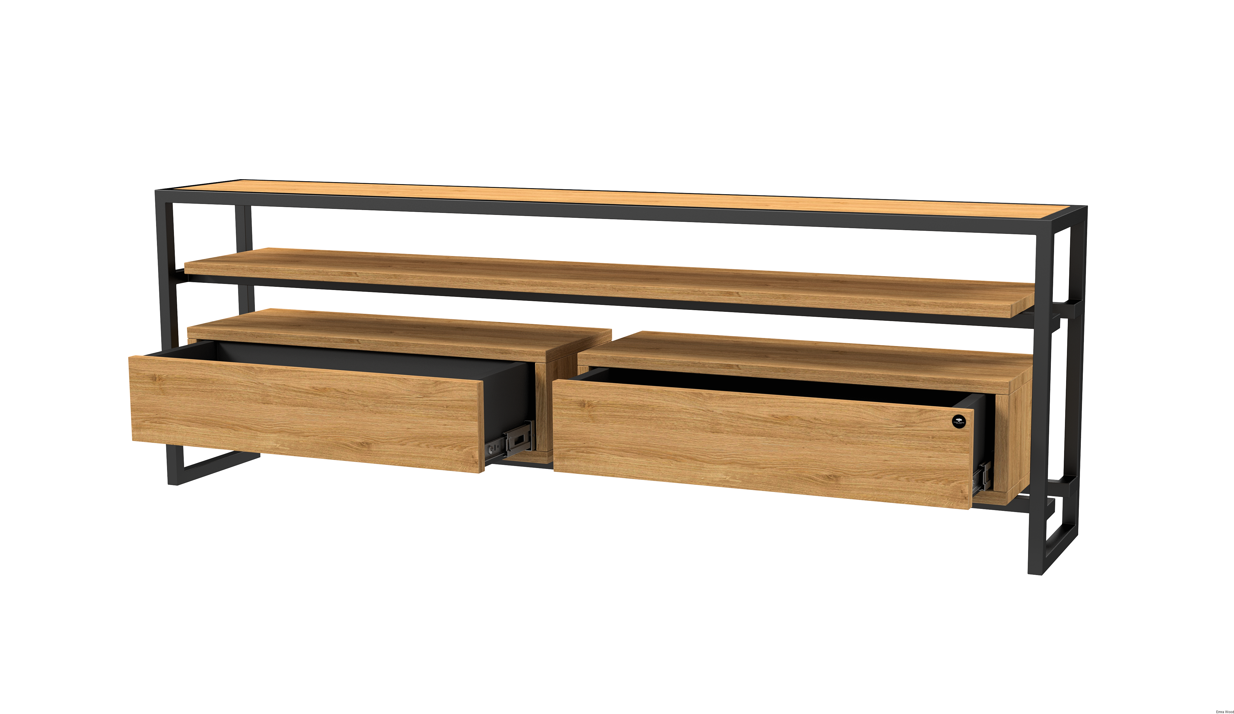 SZAFKA RTV / Gatunek Drewna DĄB LOFT / / Stelaż Naturalny Lakier / noga metalowa czarna / model RTV-77